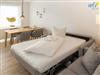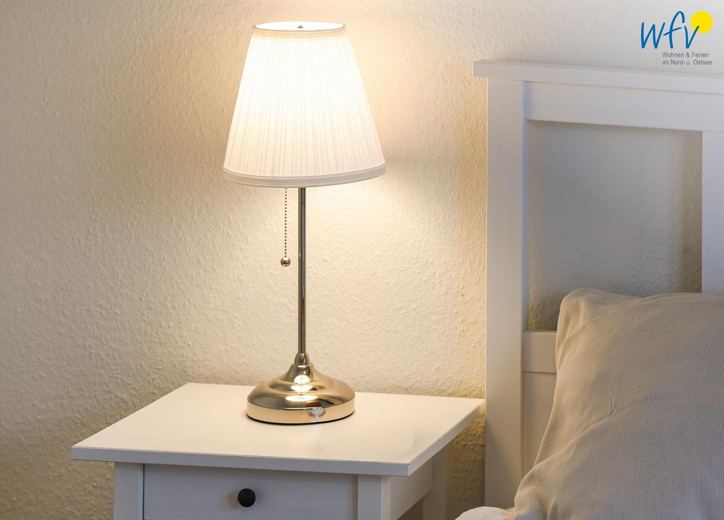 Das freundlich eingerichtete separate Schlafzimmer mit schönem Gartenblick bietet einen ruhigen Rückzugsort. Ausgestattet ist es mit einem komfortablem Doppelbett (180 x 200 cm). Die Couch im Wohnraum lässt sich schnell und einfach zu einem Bett umfunktionieren und bietet Schlafmöglichkeiten für eine weitere Person.