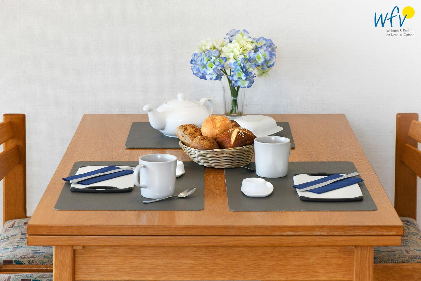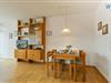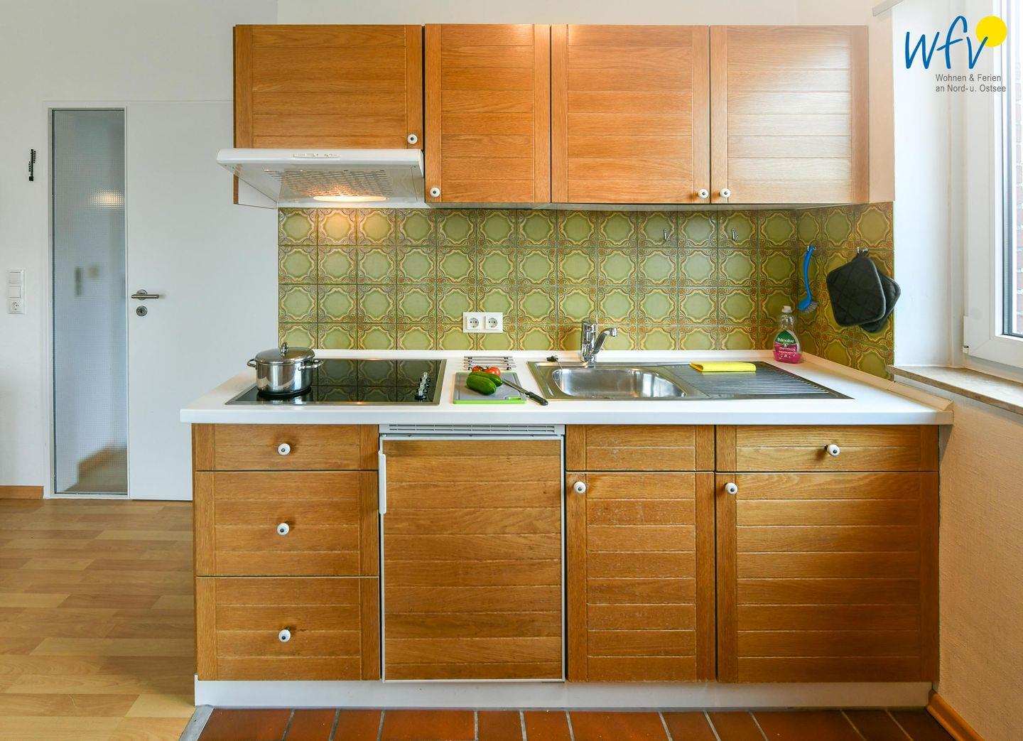 Für eine bequeme Selbstverpflegung steht Ihnen eine offene Küche zur Verfügung - u.a. mit Ceranherd, Mikrowelle und Kühlschrank mit Gefrierfach sowie diversen Kleingeräten. So lassen sich schnell und einfach Snacks für den Ausflug oder leckere Gerichte zubereiten. Ein Esstisch bietet Platz zum Klönen, für das Urlaubsfrühstück oder das gemeinsame Abendessen.