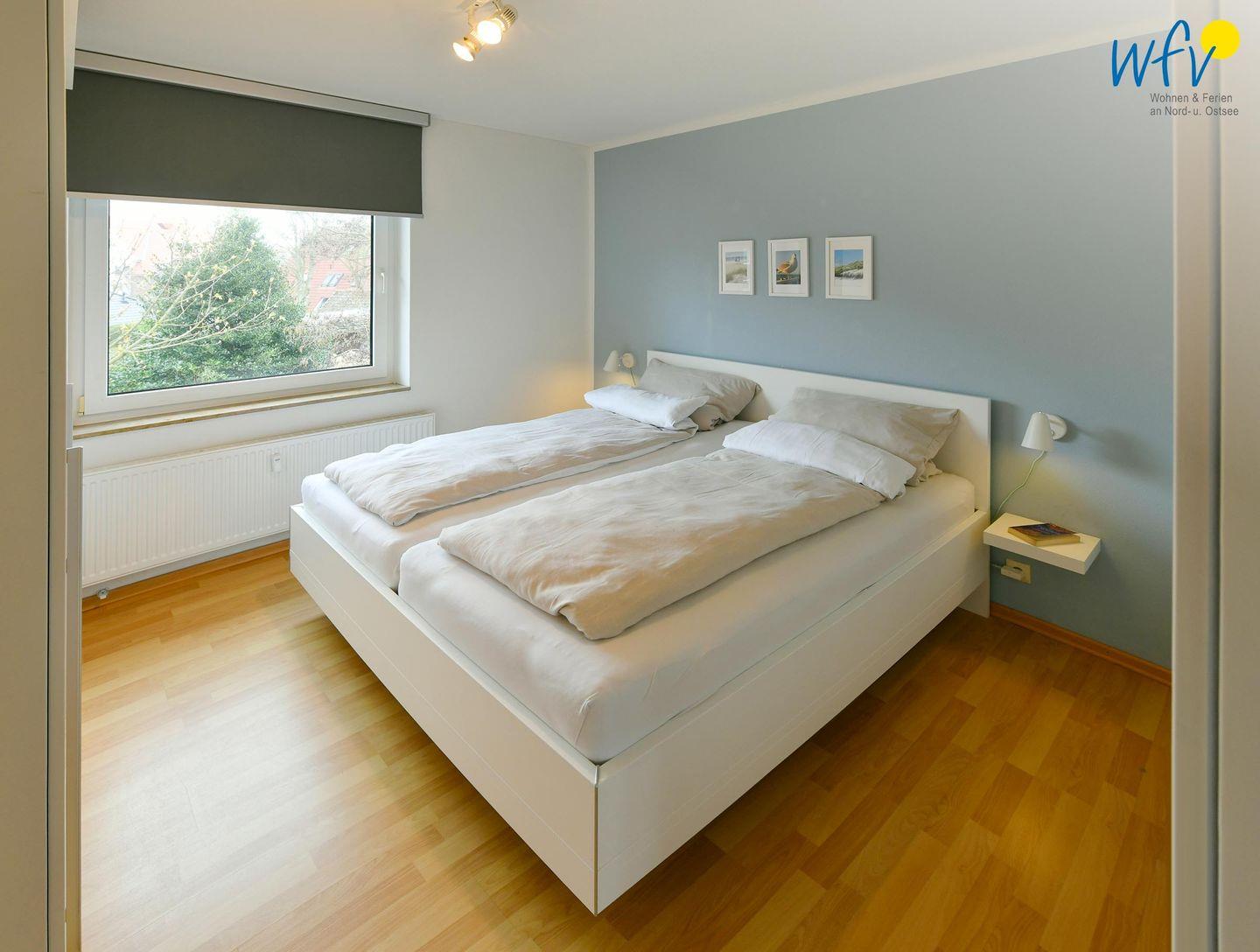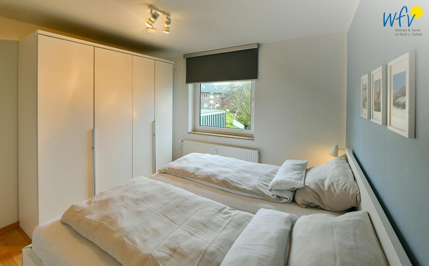 Das separate Schlafzimmer ist mit einem bequemen Doppelbett (180 x 200 cm) und einem geräumigen Kleiderschrank eingerichtet. Für zwei weitere Personen kann die Couch im Wohnraum zu einem Doppelbett umfunktioniert werden (180 x 200 cm).