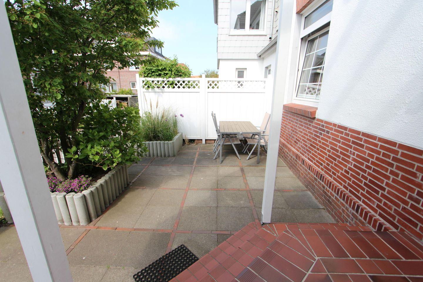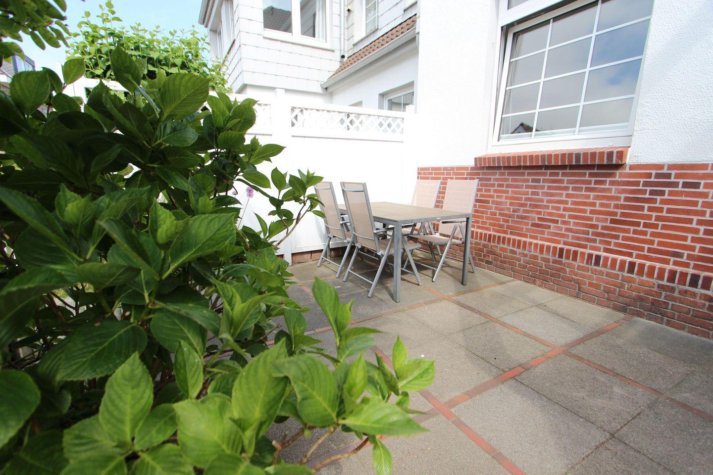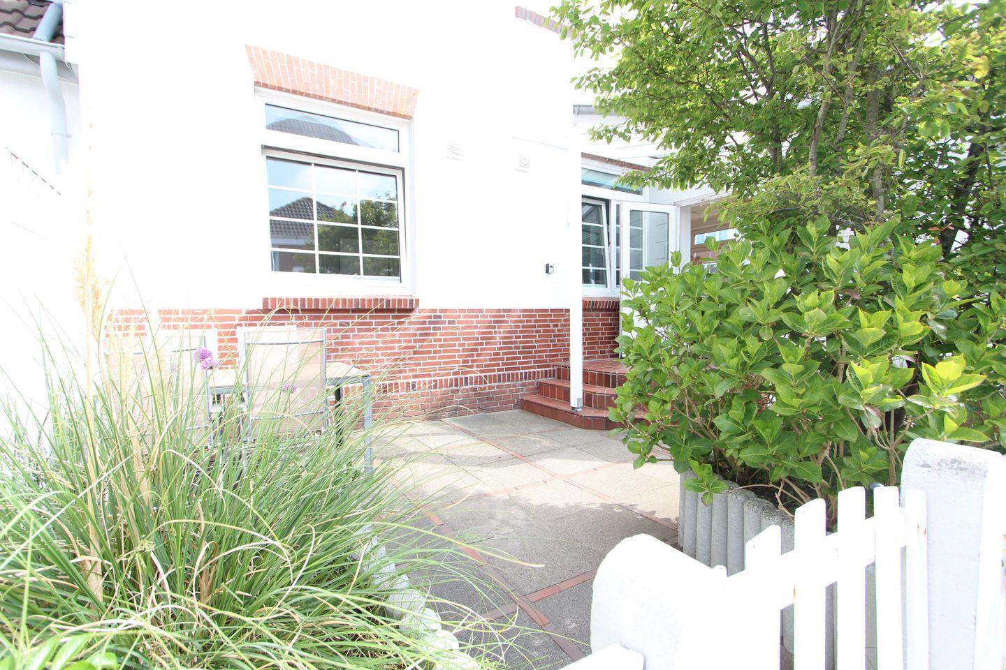 Familienfreundlichen Erdgeschosswohnung mit sonniger Terrasse für bis zu 4 Personen und Baby. Die ruhige, zentrale Lage bietet kurze Wege zum Ortskern und zum Strand. Die modern ausgestattete Wohnung verfügt über zwei Schlafzimmer, einen großzügigen Wohn-Essbereich, TV, Radio/CD und DVD Player, WLAN sowie eine voll ausgestattete Küche mit Ceran-Kochfeld, Backofen, Toaster, Kaffeemaschine, Waffeleisen, großer Kühlschrank mit Eisfach.