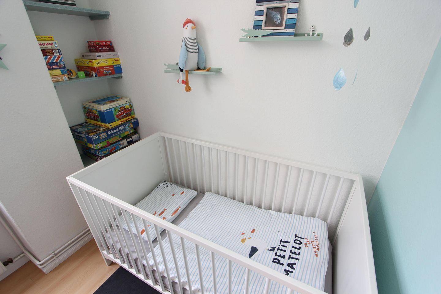Kleines Kinderzimmer: Etagenbett (2 Schlafplätze) und zusätzlich ein Gitterbett