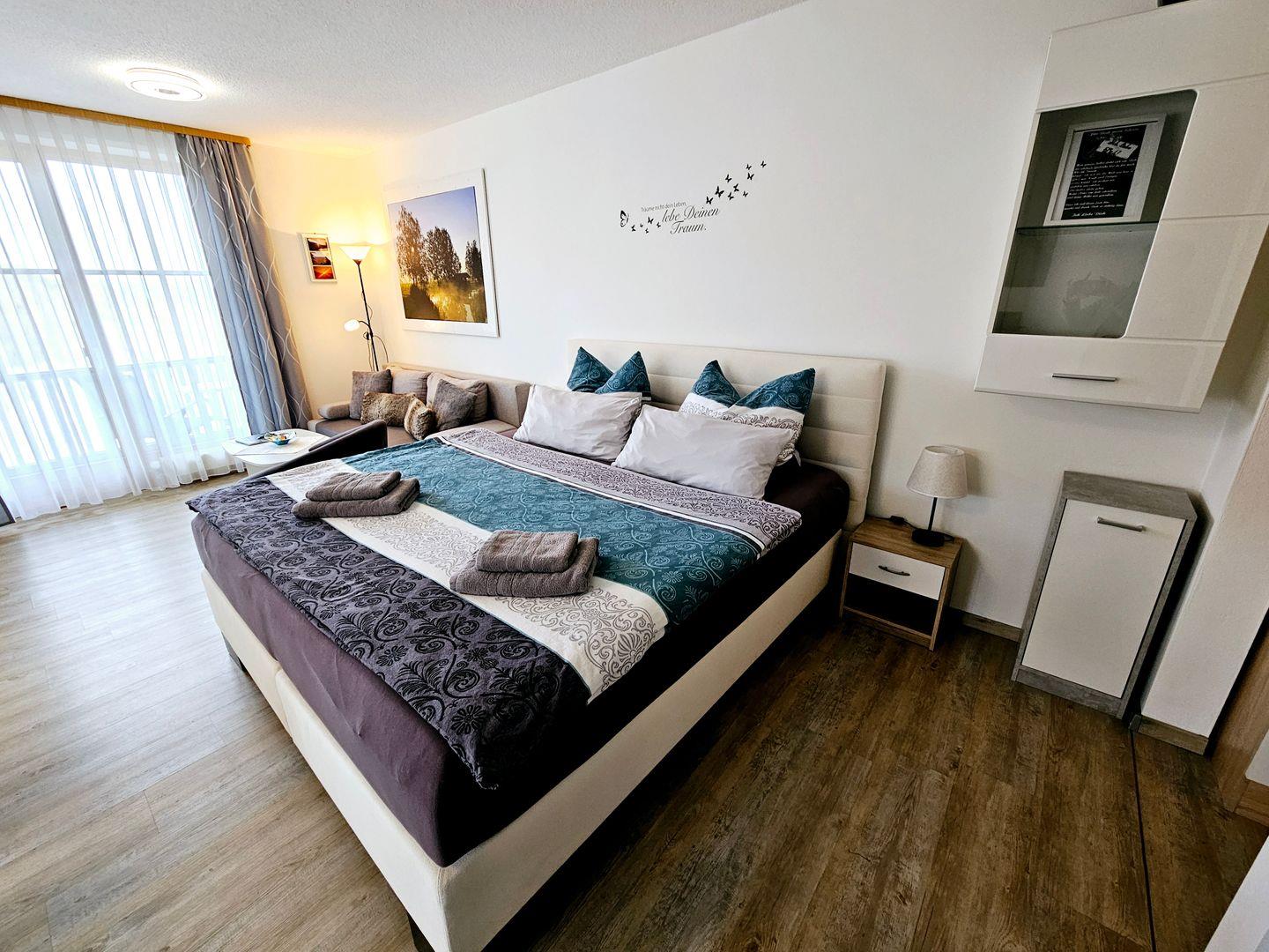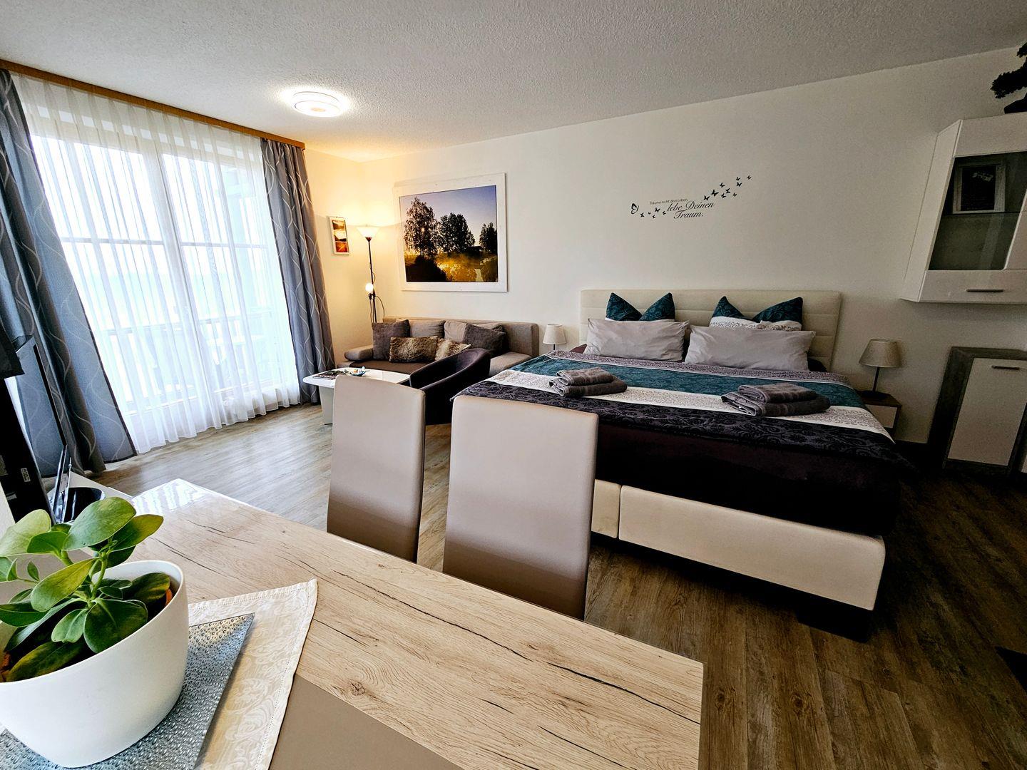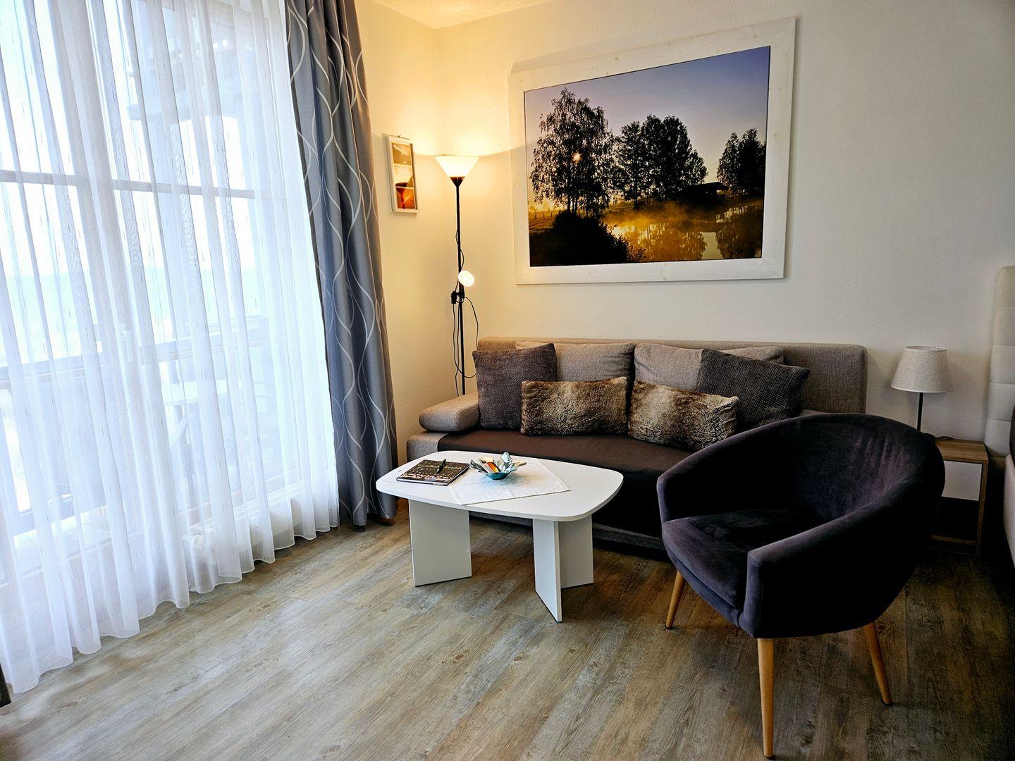 Willkommen in der Ferienland Sonnenwald Ferienwohnung 44 "Sonnenschein". Diese gemütliche Unterkunft bietet auf ca. 35 m² Fläche Platz für bis zu drei Personen, mit einem Boxspringbett und einer Schlafcouch und ist ideal für Familien. Genießen Sie den Balkon mit traumhaftem Berg- und Landschaftsblick. Die offene Küche ist bestens ausgestattet, darunter eine Kaffeemaschine, Espressomaschine und modernen Herd. Zur weiteren Ausstattung zählen ein Wohnzimmer mit Sofaecke, ein Badezimmer mit Badewanne sowie WLAN. Ein Tiefgaragenparkplatz ist ebenfalls verfügbar. Erkunden Sie die ländliche Umgebung mit zahlreichen Freizeitmöglichkeiten wie Wandern, Radfahren und Skilanglauf.