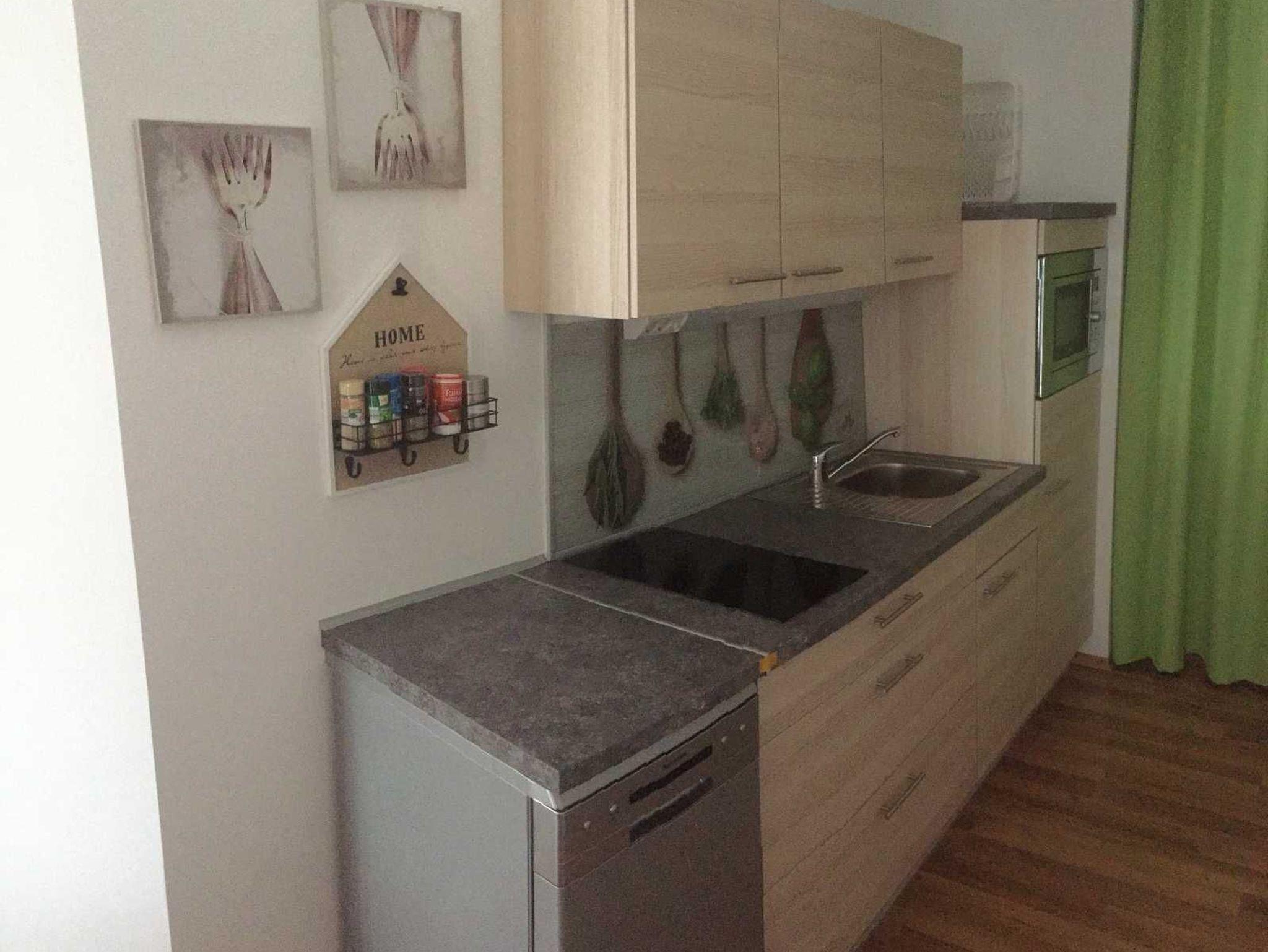 Küche mit Geschirrspüler,Mikrowelle,Wasserkocher,Toaster,Eierkocher,Kaffeemaschine ,Wasserkocher, kleiner Backofen und genügend Geschirr.