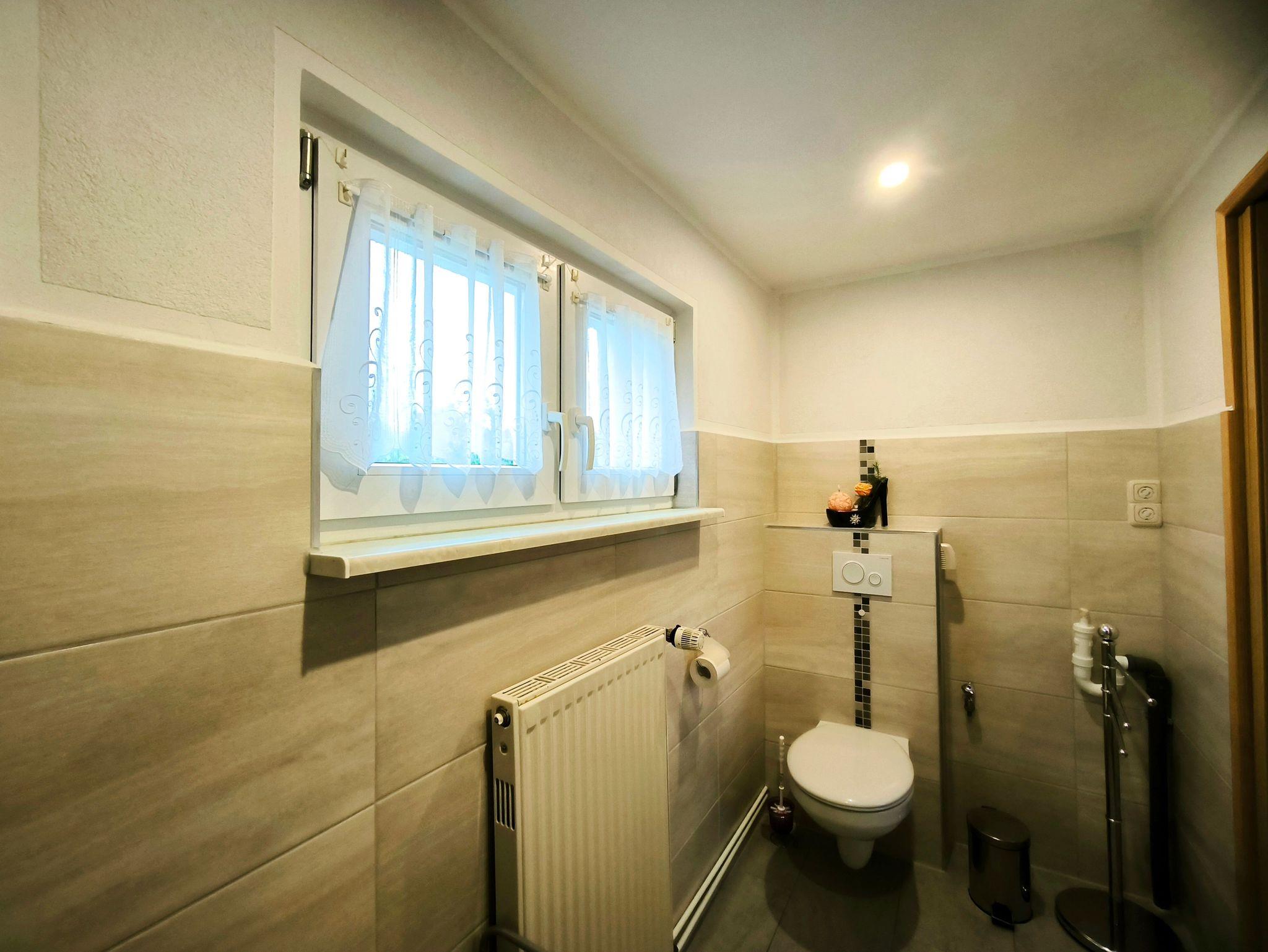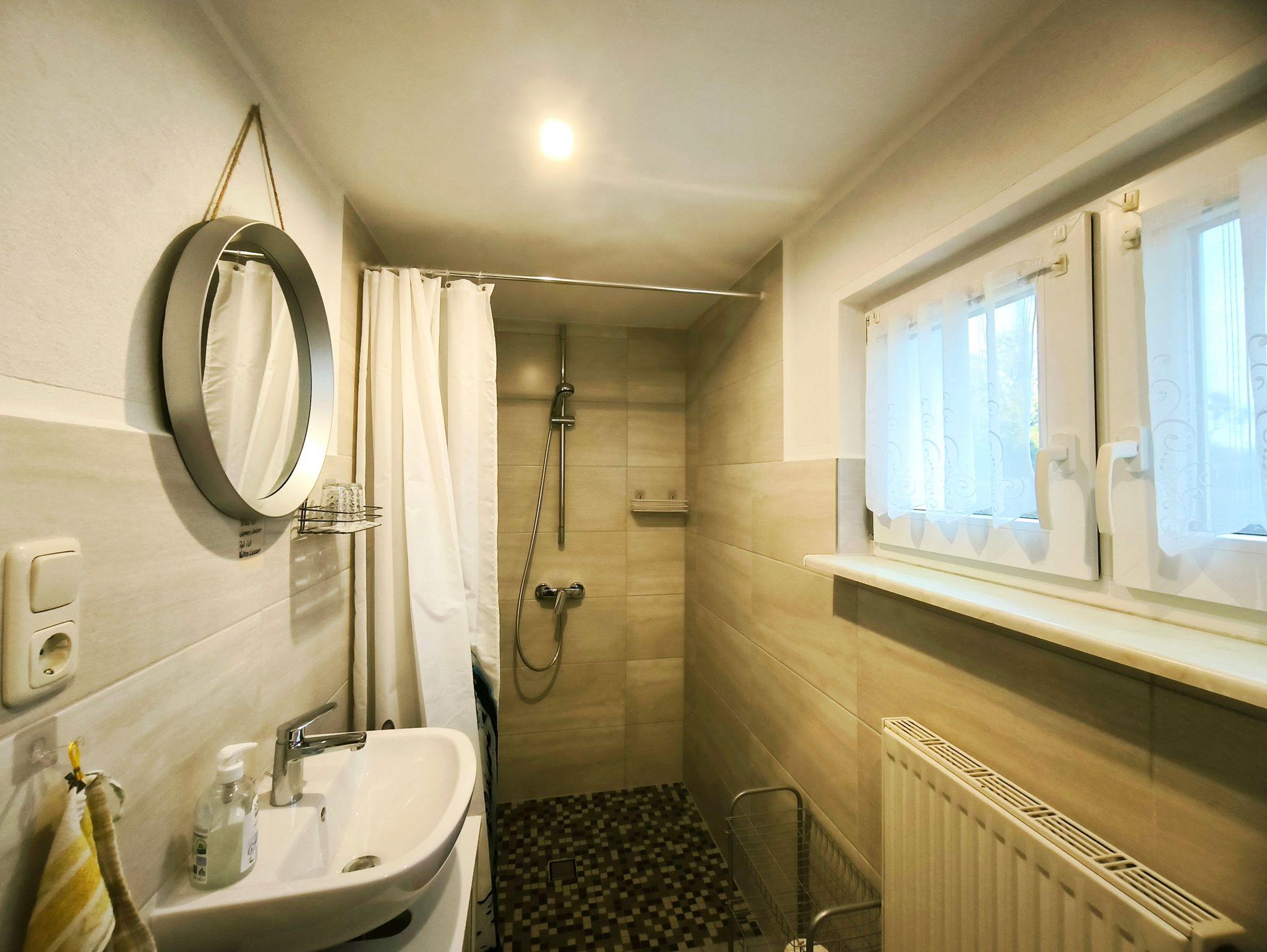 Der gemütliche Bungalow liegt separat auf dem Grundstück des Vermieters und ist über eine eigene Zufahrt zu erreichen. Er ist mit einem Wohnzimmer mit Schlafsofa zur Aufbettung sowie einem Schlafzimmer mit Doppelbett ausgestattet. Das Badezimmer verfügt über eine ebenerdige Dusche und WC. Die Küche ist voll ausgestattet mit Geschirr, 4-Platten-Herd/Backofen, Kühlschrank mit Eisfach, Kaffemaschine, Toaster, Wasser- und Eierkocher. Auf der Terrasse lässt es sich wunderbar frühstücken. Für Sonnenanbeter gibt es zwei Liegen auf dem Rasen.