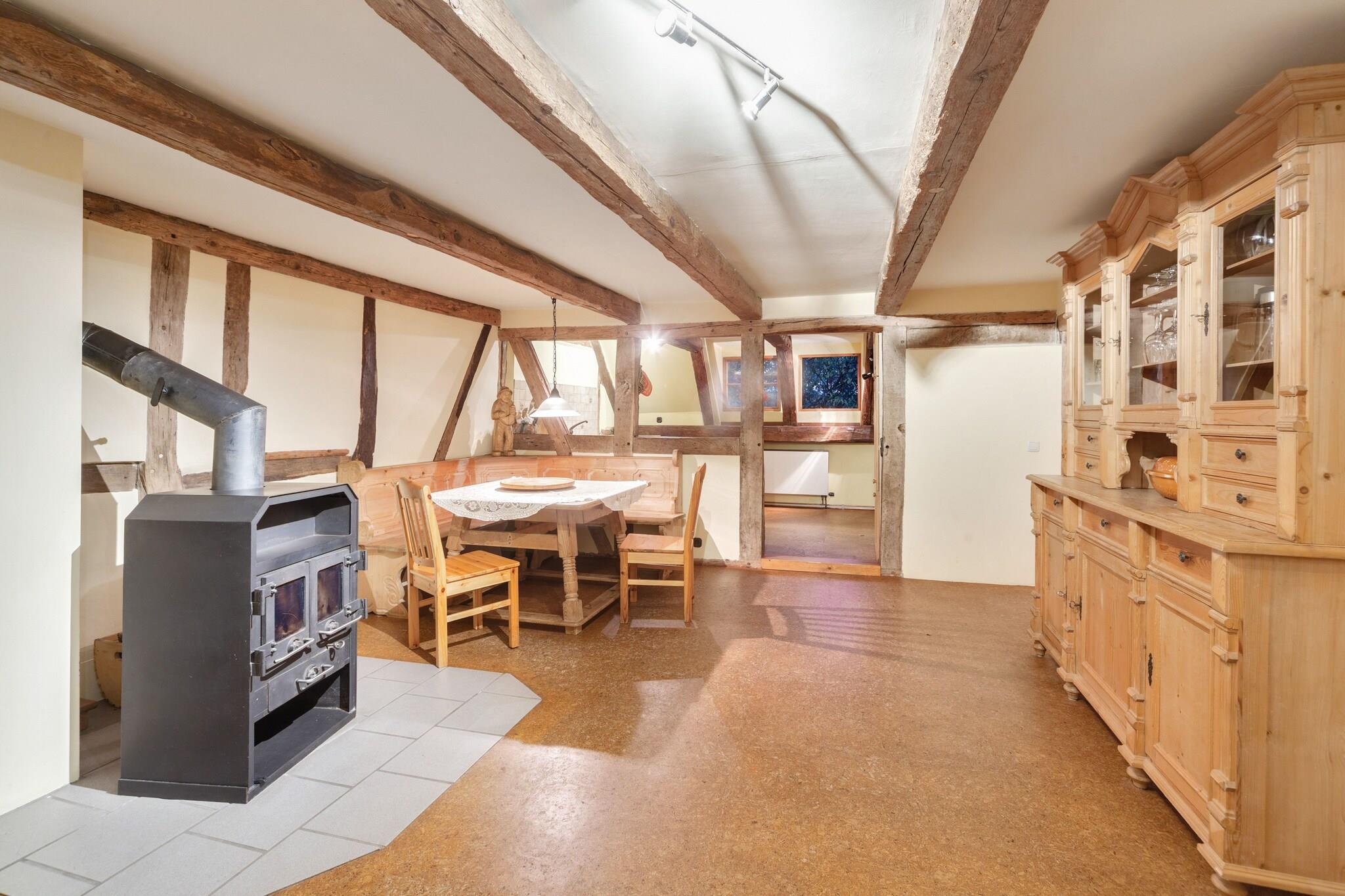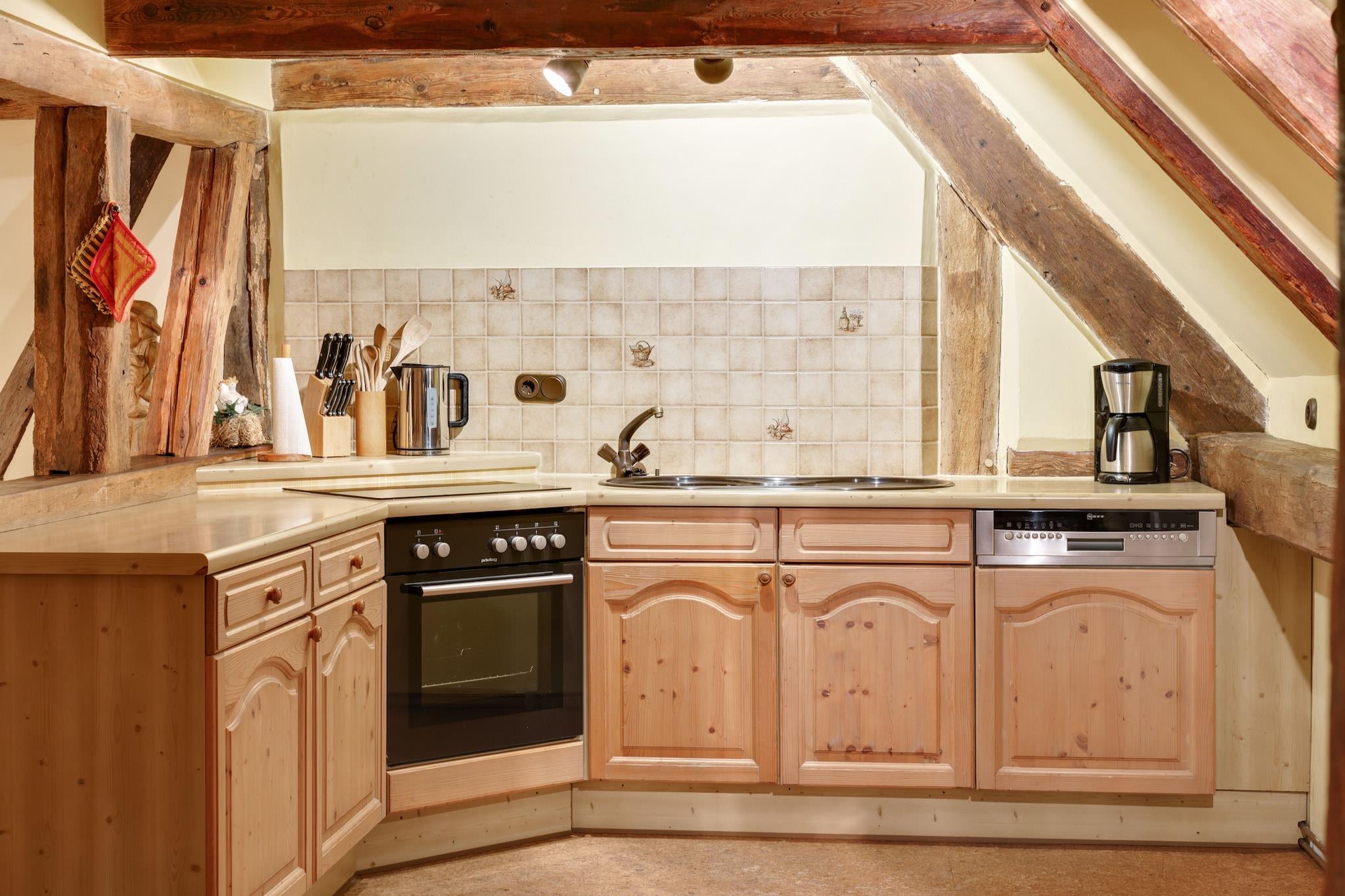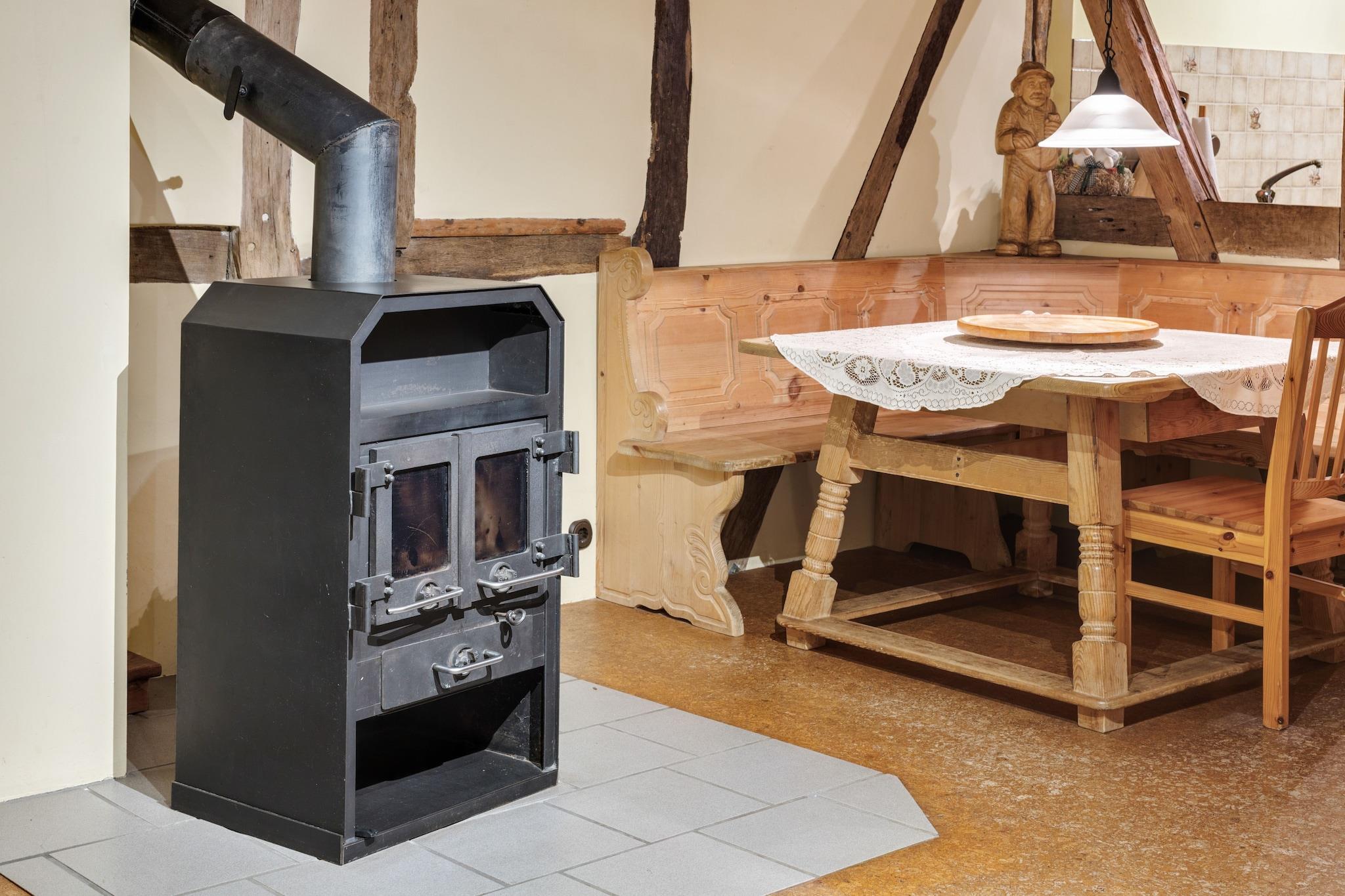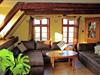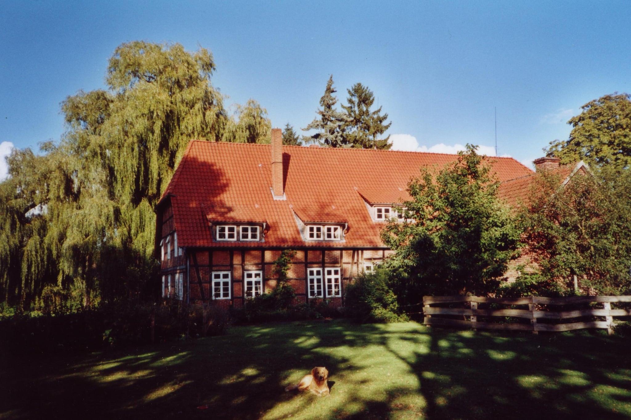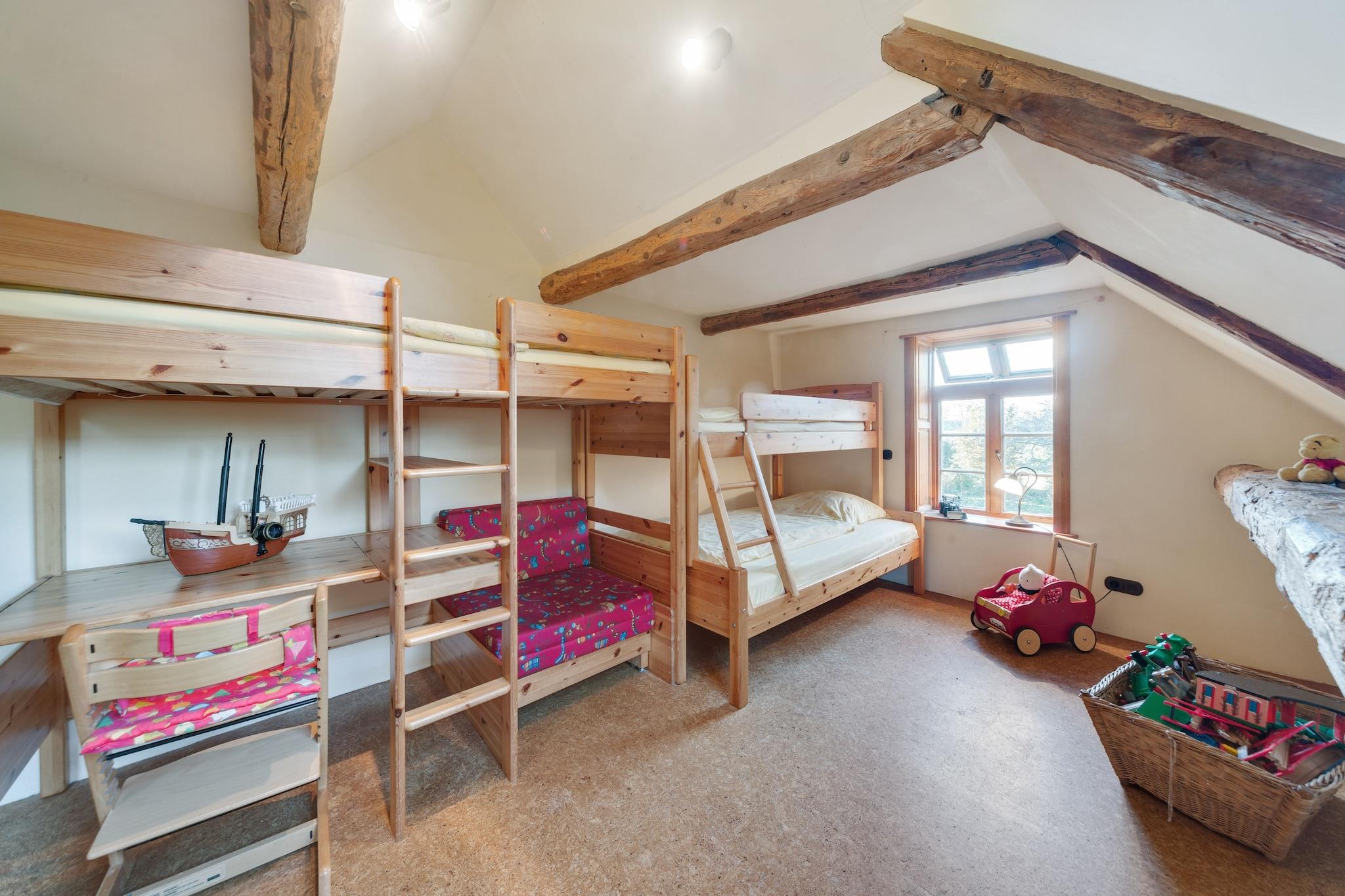 Denne generøse størrelse, kæledyrsvenlige lejlighed strækker sig over to etager og er ideel til store familier eller grupper, der søger en flugt på landet. Stueetagen har en lys stue/spisestue med to dobbelte sovesofaer, tv, dvd- og cd-afspillere, stereoanlæg og havedøre, der fører udenfor. Det åbne køkken er fuldt udstyret med komfur, ovn, opvaskemaskine og køle-fryseskab, mens badeværelset har bruser og toilet. Legeredskaber, en børneseng og en høj stol gør det særligt familievenligt. Ovenpå vil gæsterne finde en anden stue med to enkeltsovesofaer og underholdningsfaciliteter samt en spisestue med en dekorativ pejs. Sovearrangementer omfatter en køjeseng, en dobbelt sovesofa og et børneværelse med flere senge og legeredskaber. Det andet badeværelse byder på et hipt badekar, bruser, toilet, håndvask og urinal. Der er vaskemaskine til rådighed, og centralvarme sikrer komfort året rundt. Udendørs kan du nyde en privat gårdhave og fælles have med møbler, grill og legeredskaber. Bordfodbold og stalde tilføjer charmen, mens nærliggende skovstier, søer og floder byder på masser af naturbaserede aktiviteter. Forretninger, restauranter og offentlig transport ligger inden for 3,5 km, og banegården ligger kun 13 km væk.