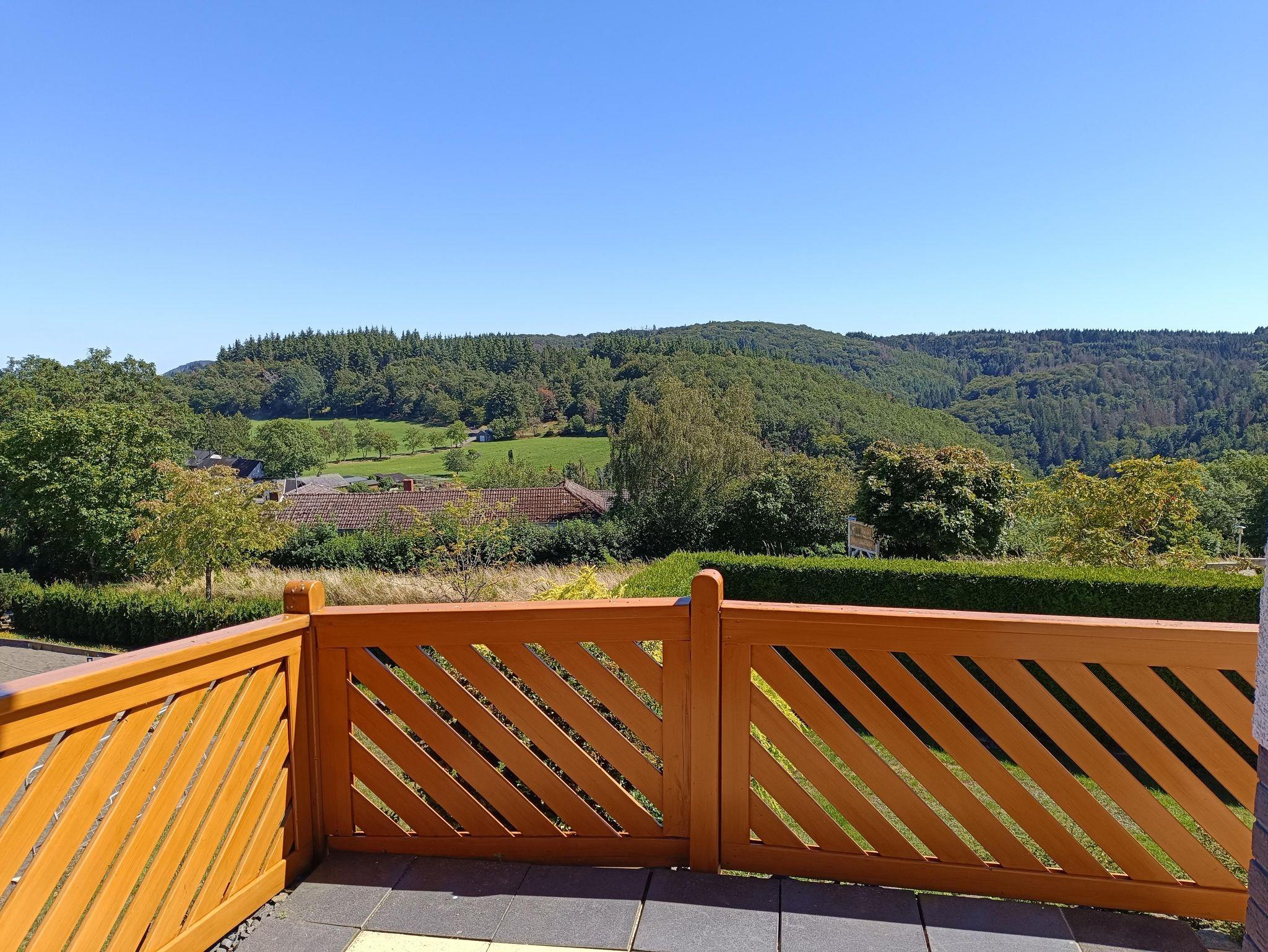 - Balkon mit Süd-Ost Ausrichtung und ungehindertem, weitschweifendem Blick über die wunderbare Eifellandschaft. Gartenstühle mit Auflagen, Tisch und einem Sonnenschirm.