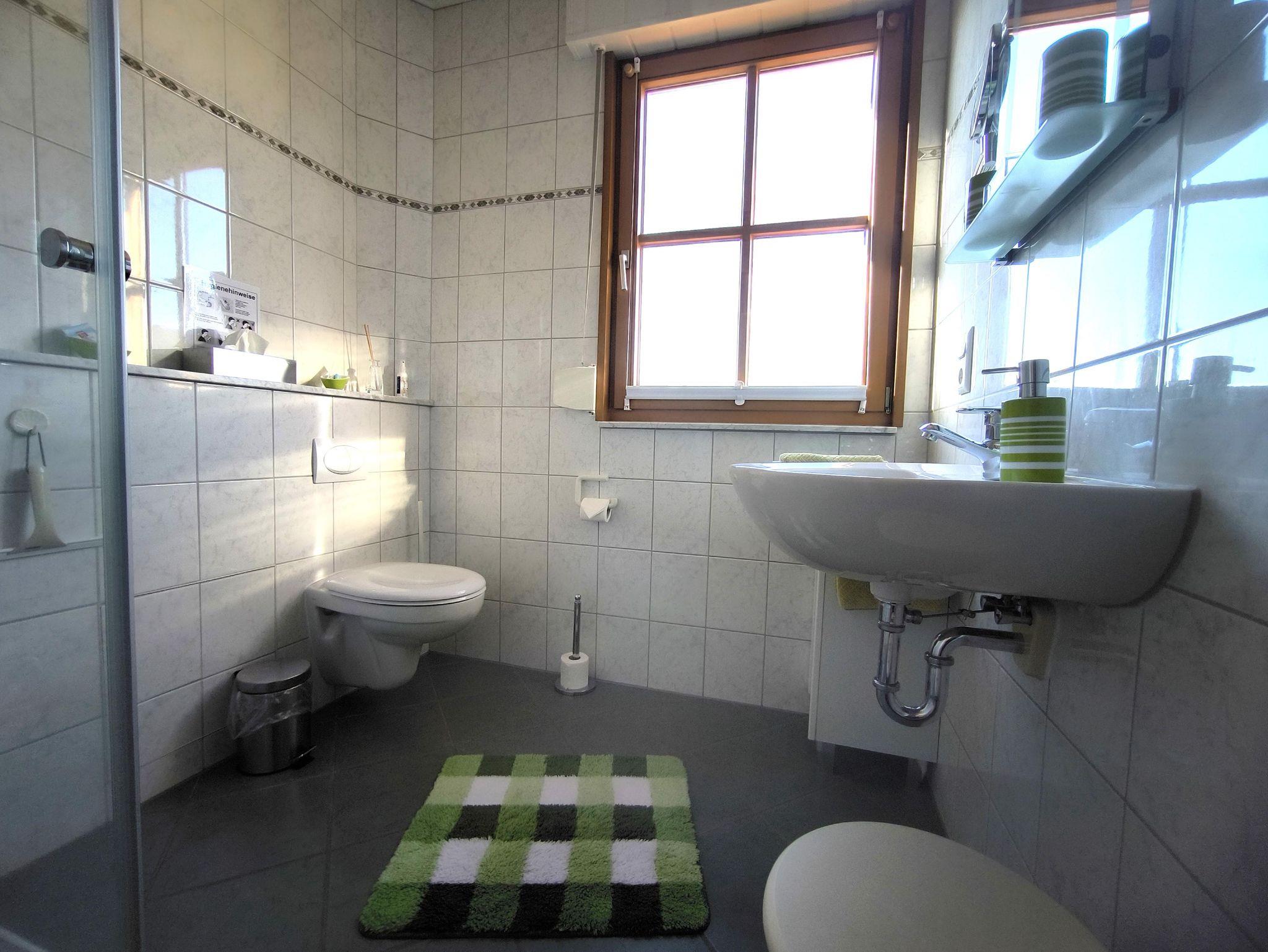 - Badezimmer mit Dusche, Fön, Handtüchern, Grundausstattung mit Toilettenpapier, Reinigungsmitteln und Seife.