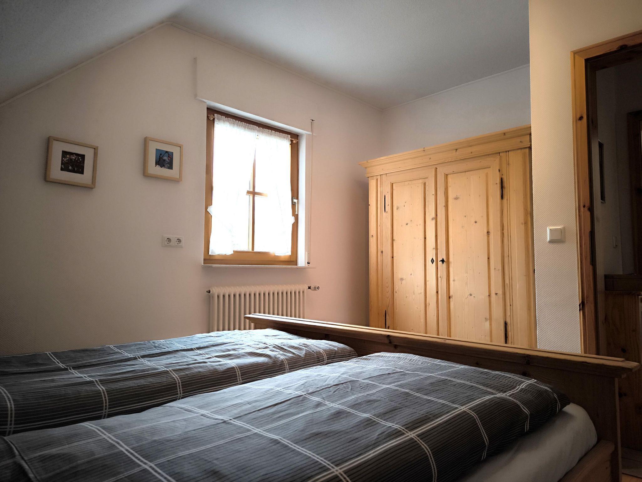 - 2 Schlafzimmer mit Doppelbett, allergiefreien Matratzen, Nachtkommoden und einem 5-türigen Kleiderschrank und Möbeltresor im Schrank.