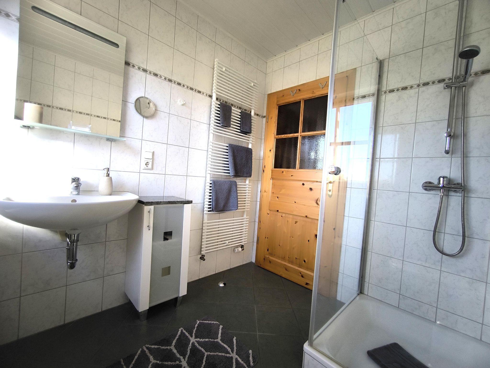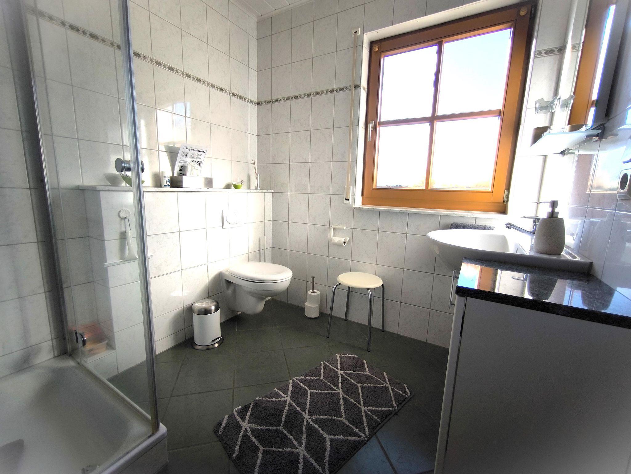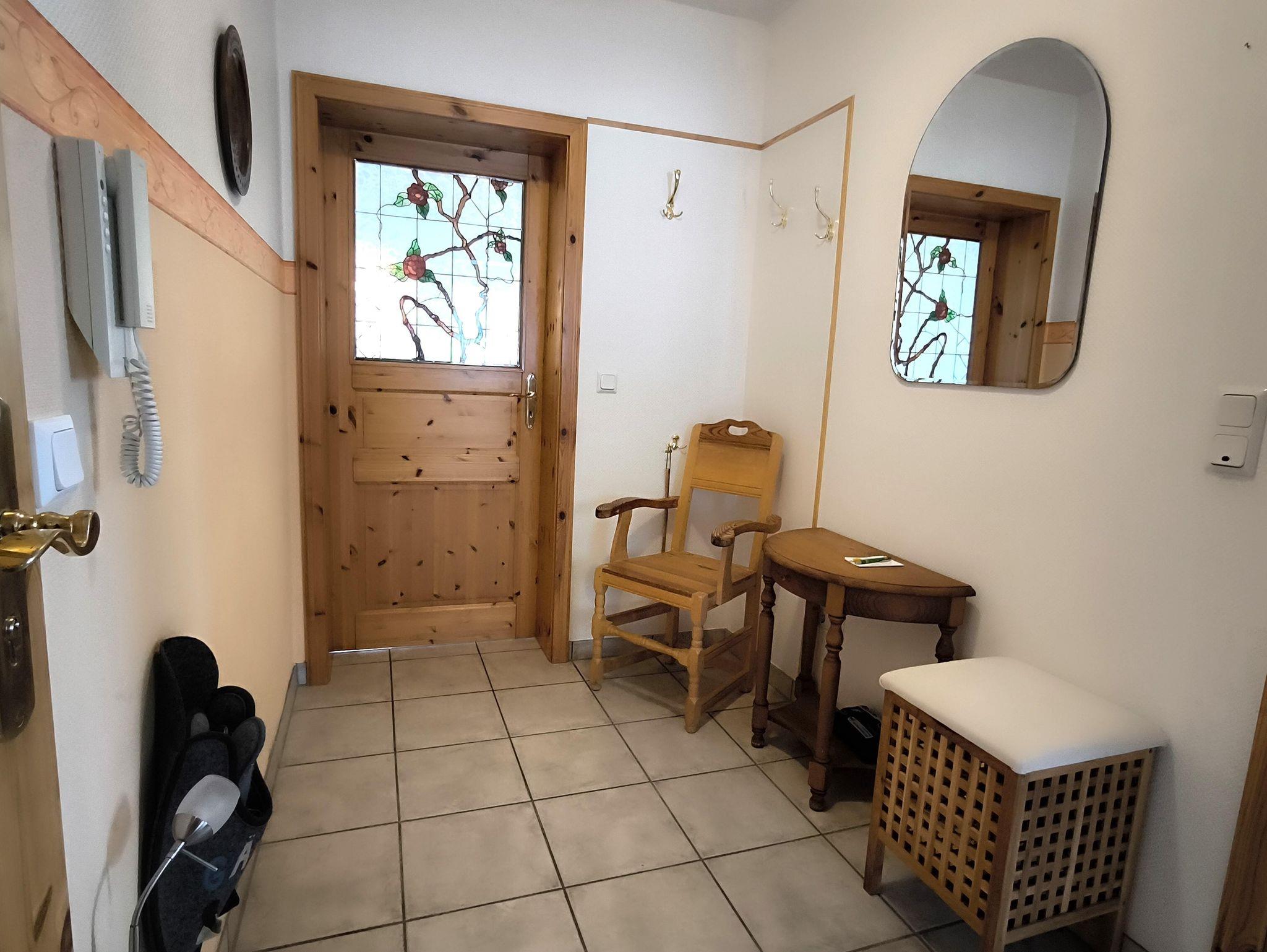 Die 57 qm große Wohnung befindet sich im Erdgeschoss. Im ganzen Haus können Sie kostenlos WLAN nutzen. Die Wohnung ist hochwertig im Landhausstil eingerichtet und besteht aus, einem Wohn- und Esszimmer mit einer gemütlichen Couch-Ecke mit LCD-TV, Stereoanlage und DVD Player. In der Essecke steht ein zentral beheizter Kachelofen mit gemütlicher Holzofenbank, ein Tisch und zwei Stühle. Die Wohnung hat ein separates Schlafzimmer mit Doppelbett, allergiefreien Matratzen, Nachtkommoden und einem 5-türigen Kleiderschrank und ein Möbeltresor im Schrank. Das Badezimmer ist ein Duschbad mit Handwaschbecken und Toilette. Fön, Handtücher, eine Grundausstattung mit Toilettenpapier, Reinigungsmitteln und Seife gehören dazu. Die ebenfalls abgeschlossene Küche hat eine Spülmaschine, Ka?ffeemaschine, Toaster, Wasserkocher, Mikrowelle, Eierkocher, Mixer und Kühlschrank mit Gefrierfach. Die Küchenschränke sind eingerichtet. Enthalten ist auch eine Grundausstattung von Küchenhandtüchern/Spültuch, Spülmitteln, Filtertüten, Mülltüten, Küchenrolle, Spülmittel und Tabs. Der Balkon mit Süd-Ost Ausrichtung hat einen ungehinderten, weitschweifenden Blick über die wunderbare Eifellandschaft. Die Gartenstühle mit Auflagen, Tisch und Tischdecke und ein Sonnenschirm gehören auch zur Ausstattung. Weiter hat das Haus einen großen Garten mit Badminton-/Bolzplatz, ein Boule Platz und daran eine Grillecke. Auf Anfrage können Waschmaschine und Trockner gegen Entgelt benutzt werden. Die Geräte im Fitnessbereich mit Wintergarten können Sie jederzeit nutzen und sind im Preis enthalten. Die Sauna und die Infrarotkabine im Wellnessbereich können Sie auch nutzen, müssen diese aber bis spätestens 1 Tag vorher während Ihres Aufenthaltes gegen Entgelt dazubuchen. Dafür steht Ihnen der Bereich auch allein zur Verfügung. Hauseigene Parkplätze befinden sich direkt vor der Eingangstür. In der abschließbaren Garage können Sie Ihre Räder und E-Bikes sicher unterbringen. Eine Steckdose zum Laden ist vorhanden.