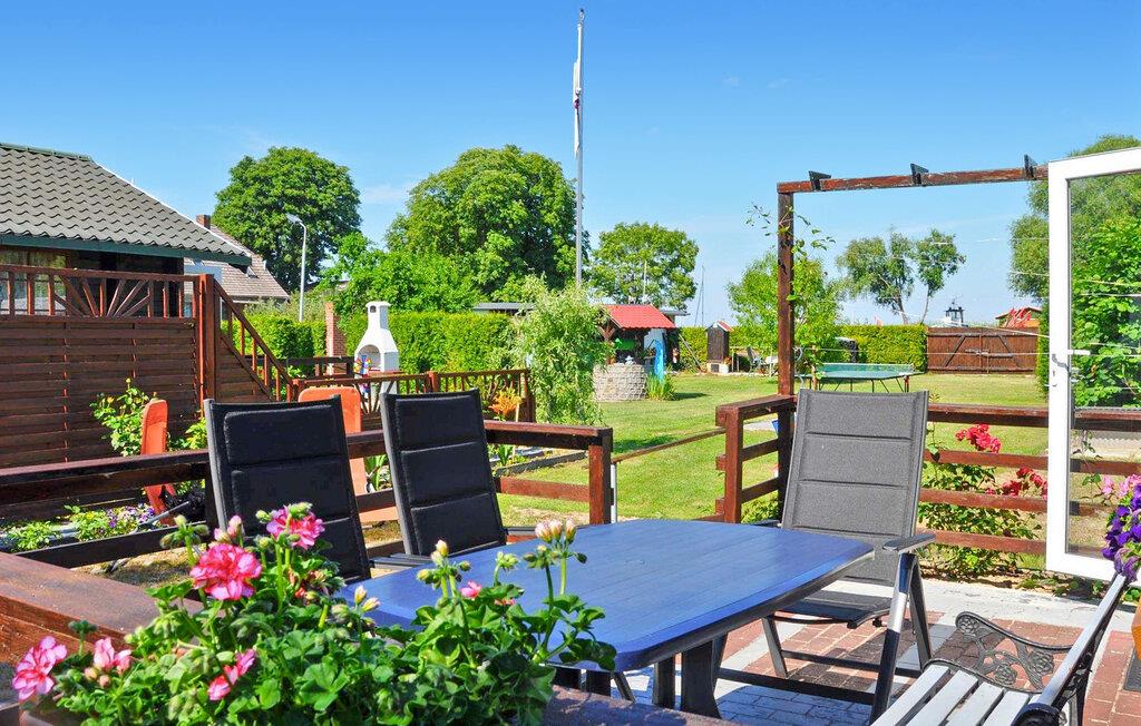 Direkte på Peenestrom ligger et af to bjælkehytte-stil feriehuse til hver 2 personer på ejerens cirka 1.300 kvadratmeter, fuldt indhegnede boligejendom. Badepladsen og en restaurant ligger kun 300 og 400 m væk, bymidten med indkøbsmuligheder er 500 m væk. Det cirka 30 kvadratmeter store ikke-ryger hus har en stue (polstrede møbler, fladskærms-tv, radio, dvd-afspiller), et lille åbent køkken (elektrisk kogeplade køleskab, diverse små køkkenmaskiner, et soveværelse (dobbeltseng) og en badeværelse (bruser, toilet) En stejl, pladsbesparende trappe fører fra stuen til en hems med 2 ekstra sovepladser (IKKE egnet til BØRN under 3 ÅR!) Sommerhuset er udstyret med insektbeskyttelse pr. vinduerne og justerbar el-varme Alle gæster har også en møbleret terrasse foran huset, en græsplæne med liggestole på ejendommen, grill, parkeringspladser, cykelrum, et bordtennisbord og en overjordisk pool (til en gebyr). Turistfisketegn og fisketegn kan også købes gennem ejeren. Slutrengøring og sengetøj er inkluderet i den samlede pris, håndklæder og vandforbrug inkluderet. Betales på stedet: energiomkostninger efter forbrug, pool brug (hvis ønsket). Kæledyr er ikke tilladt i denne ejendom. Den lille by Lassan er en tidligere fisker- og landbrugsby på det vestpommerske fastland direkte ved Peenestrom. Øen Usedom ligger på den modsatte bred af Visasvis. Det kan nemt nås på den ene side via to broer (ca. 10 km nord og syd) og på den anden side med passagerbåde.Der er en havn, et badeområde ved Peenestrom, restauranter, butikker og udlejningsstationer for cykler i byen. Forskellige vandsportsaktiviteter såsom sejlads, stand-up padling osv. tilbydes også på en campingplads. Særlige attraktioner er det kommunale museum, kirken St. Johannes og urtehaven i nabolandet Papendorf. I juli fejres traditionen tro en havnefestival på campingpladsen.