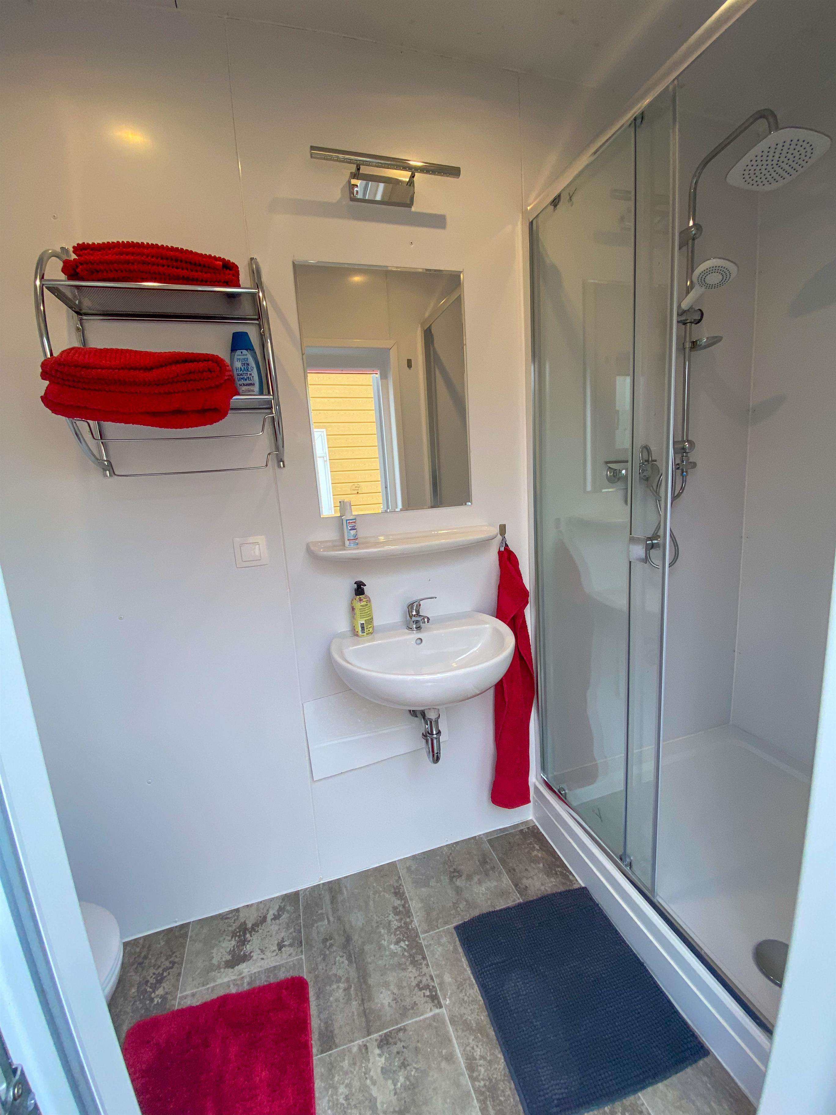 - jedes Fass hat seine eigene Sanitäranlagen mit Dusche, WC und Waschbecken