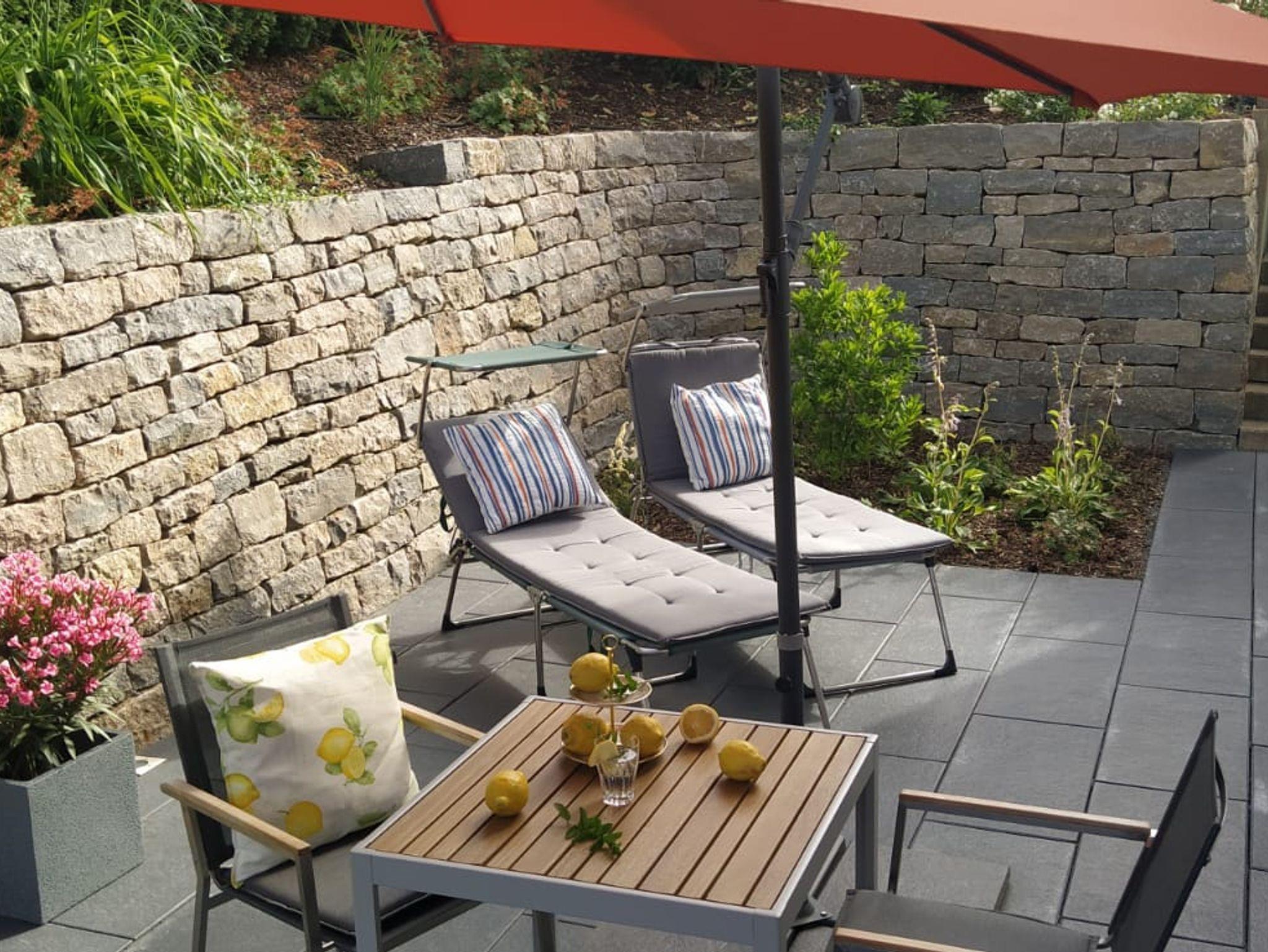 Unsere Ferienwohnung (75qm) überzeugt durch Großzügigkeit und Behaglichkeit mit geradlinigem, stilvollem Design. Die Wohnung ist hochwertig und modern ausgestattet und verfügt über eine Südterrasse. Sie bietet Platz für zwei Personen, ist barrierefrei und das ganze Jahr über zu mieten. Die Wohnung besteht aus einem modern eingerichteten Wohnzimmer, einem gemütlichen Schlafzimmer mit Doppelbett, einem Badezimmer mit begehbarer Dusche (Duschgel, Shampoo und Handseife sind vorhanden), einer Wohnküche mit Vollausstattung und einer geräumigen Diele. Vom Wohnzimmer aus kommen Sie auf eine eigene mediterran anmutende Terrasse mit Sonnenschirm, Essgruppe und zwei Liegestühlen. Hier dürfen Sie Ihre Seele baumeln lassen und herrlich entspannte Tage genießen! Wlan und Parkplatz sind kostenfrei, auch Waschmaschine und Trockner können kostenfrei genutzt werden. Bei der Wohnung handelt es sich um eine Nichtraucherwohnung.