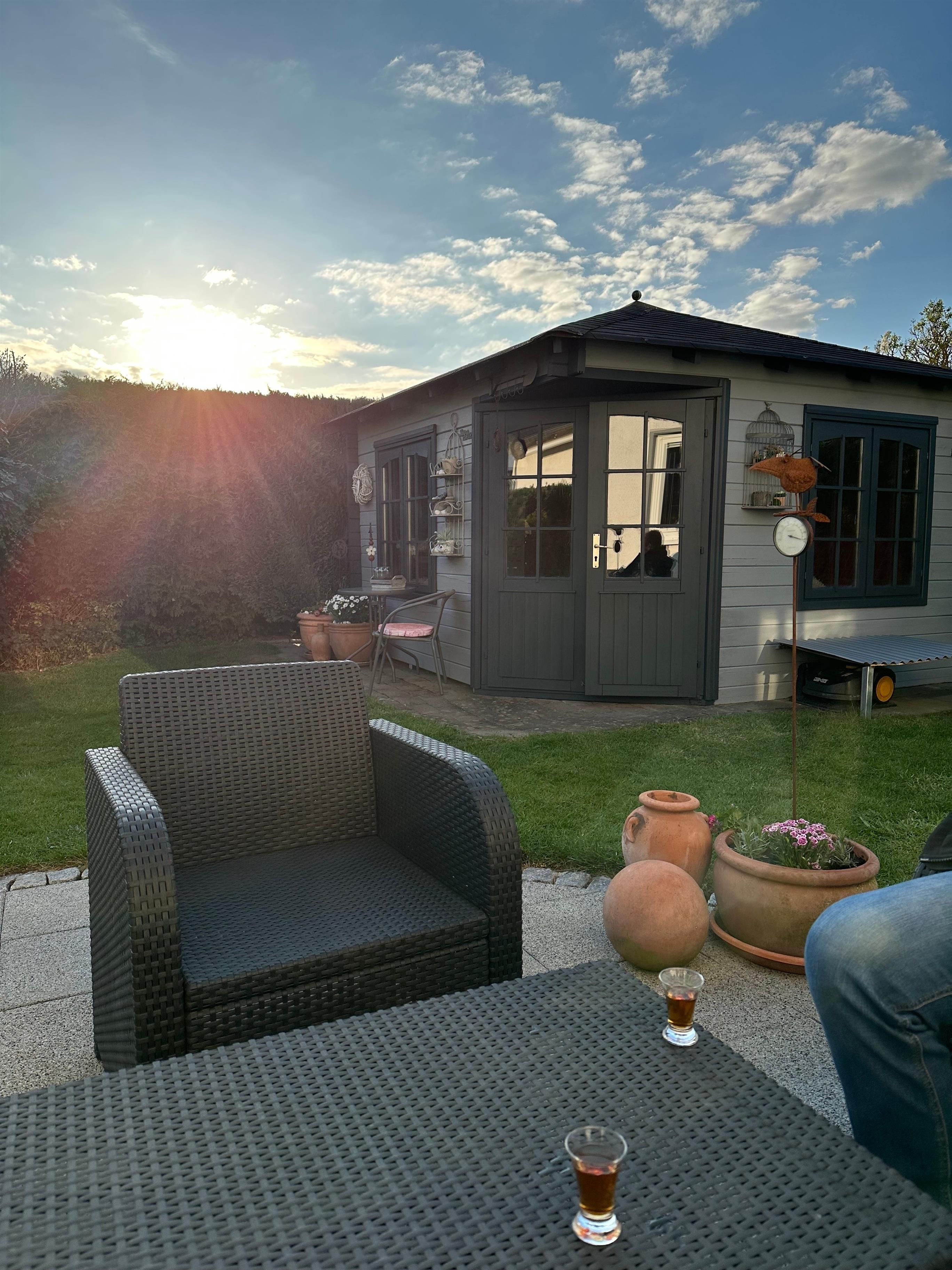 Auf der Terrasse befindet sich eine gemütliche Lounge und einem Grill der genutzt werden kann.