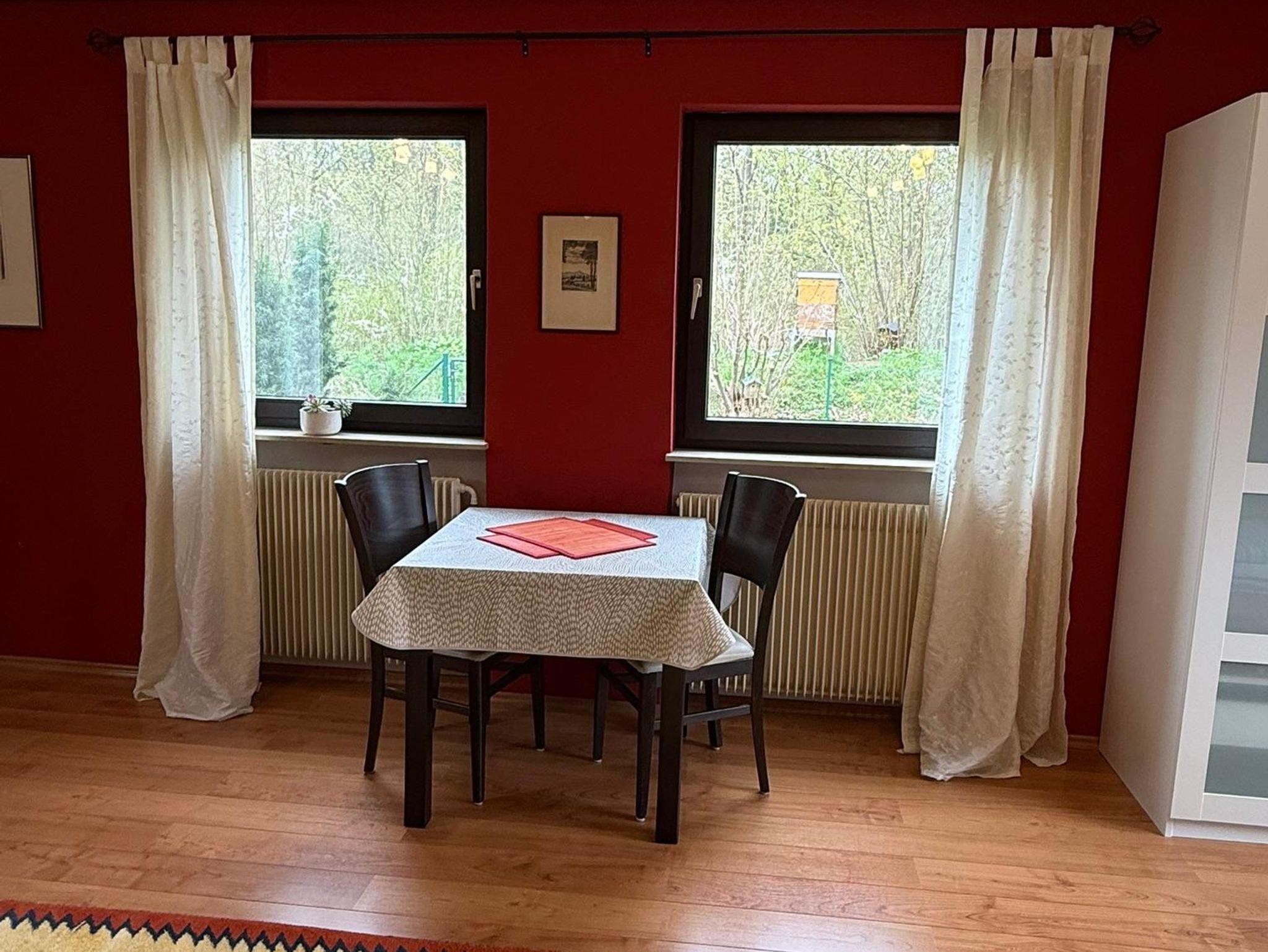 Die sonnige 3-Sterne Ferienwohnung befindet sich im Obergeschoss des Hauses direkt am Naturschutzgebiet Bitterbachschlucht. Die Wohnung ist 55qm groß und bietet Platz für bis zu 3 Personen. Im großen Wohn- und Schlafzimmer befindet sich ein Doppelbett mit offenem Fußende. Eine Couch-Landschaft mit TV, Radio und Stereoanlage lädt zum Verweilen ein. Die gut ausgestattete Küche verfügt über eine Spülmaschine, Mikrowelle und Kühlschrank mit Gefrierfach. Geschirr und Küchenwäsche sind vorhanden. Das Bad ist mit einer Badewanne, einer Dusche sowie einem Waschbecken und WC ausgestattet. Ein Kinderreisebett ist vorhanden und kann ebenso wie das W-LAN kostenfrei genutzt werden. Bettwäsche und Handtücher sind vorhanden. Im Haus befindet sich eine Waschmaschine, diese kann auf Anfrage und gegen Gebühr genutzt werden. Bitte nutzen Sie zum Parken einen Parkplatz an der Straße. Haustiere sind erlaubt - eine Gebühr wird erhoben!