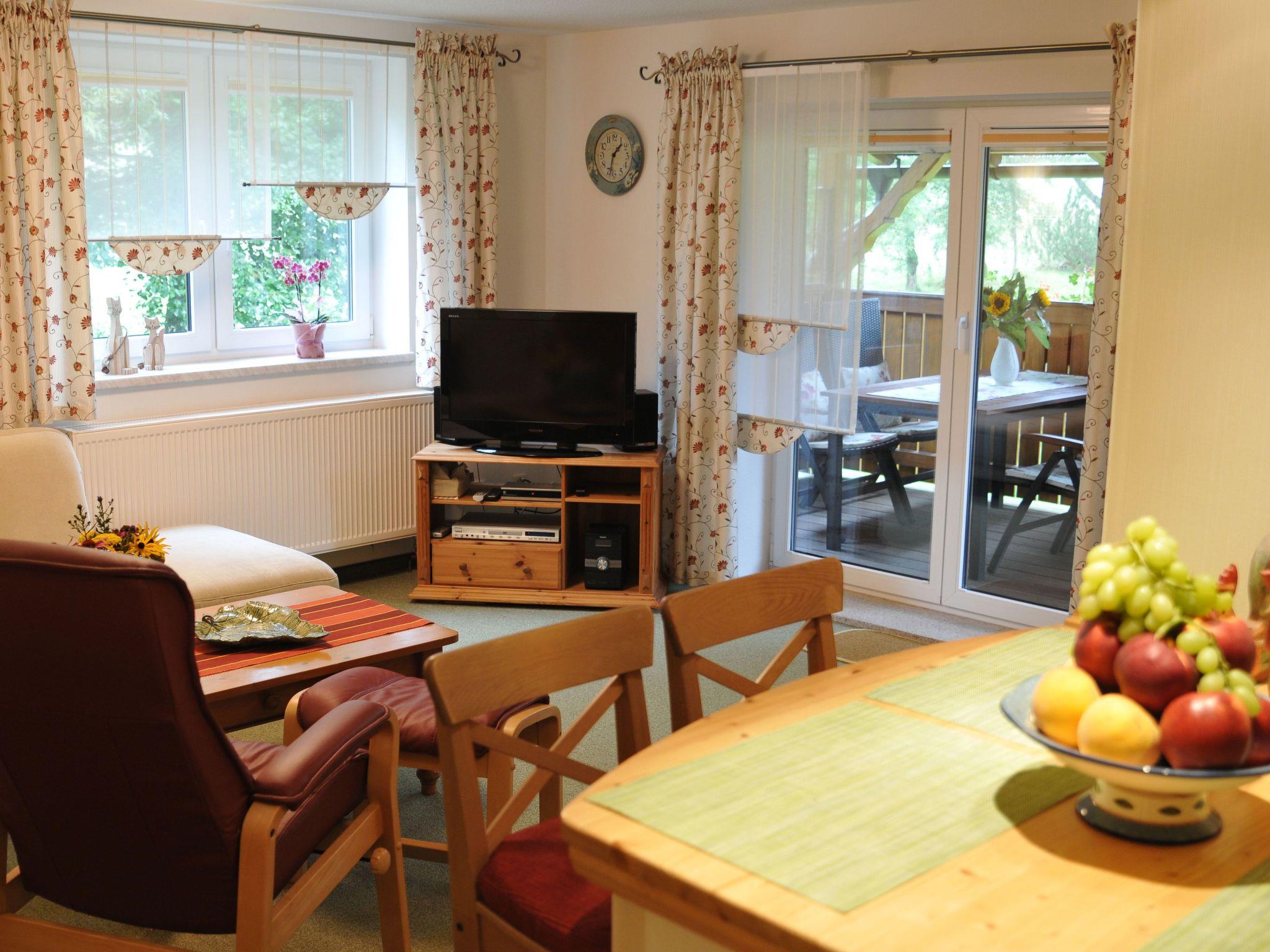 Hospitality is very important to the landlord. Mountain bikes and, in winter, sledges are available for your leisure activities. A travel cot, baby seat and baby monitor are also available to make your stay with small children easier. You can use the farm garden with its numerous herbs in front of your terrace to flavour your meals. We are also happy to provide you with Thuringian sausages from the small country butcher's shop and fresh eggs from the farm. The quietly located accommodation offers an ideal starting point for sporting activities in every season. Numerous hiking trails, ski lifts for young and old and a year-round snowtubing facility are in the immediate vicinity. There is a wide range of sights that you can easily reach in the surrounding area.