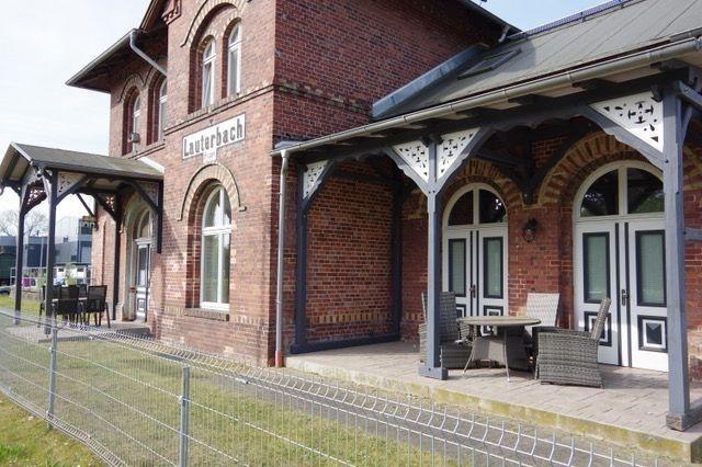 Erfreuen Sie sich an der wunderschönen Architektur des alten Bahngebäudes mit seinem alten Eisenbahnflair.