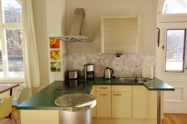 Die Ferienwohnung ist über die ursprüngliche Freitreppe zu erreichen. Vom großzügigen Eingangsbereich gelangen Sie in das abgeschlossene Schlafzimmer, in das moderne und hochwertig ausgestattete Bad sowie in den offenen Wohn-, Ess- und Schlafbereich.