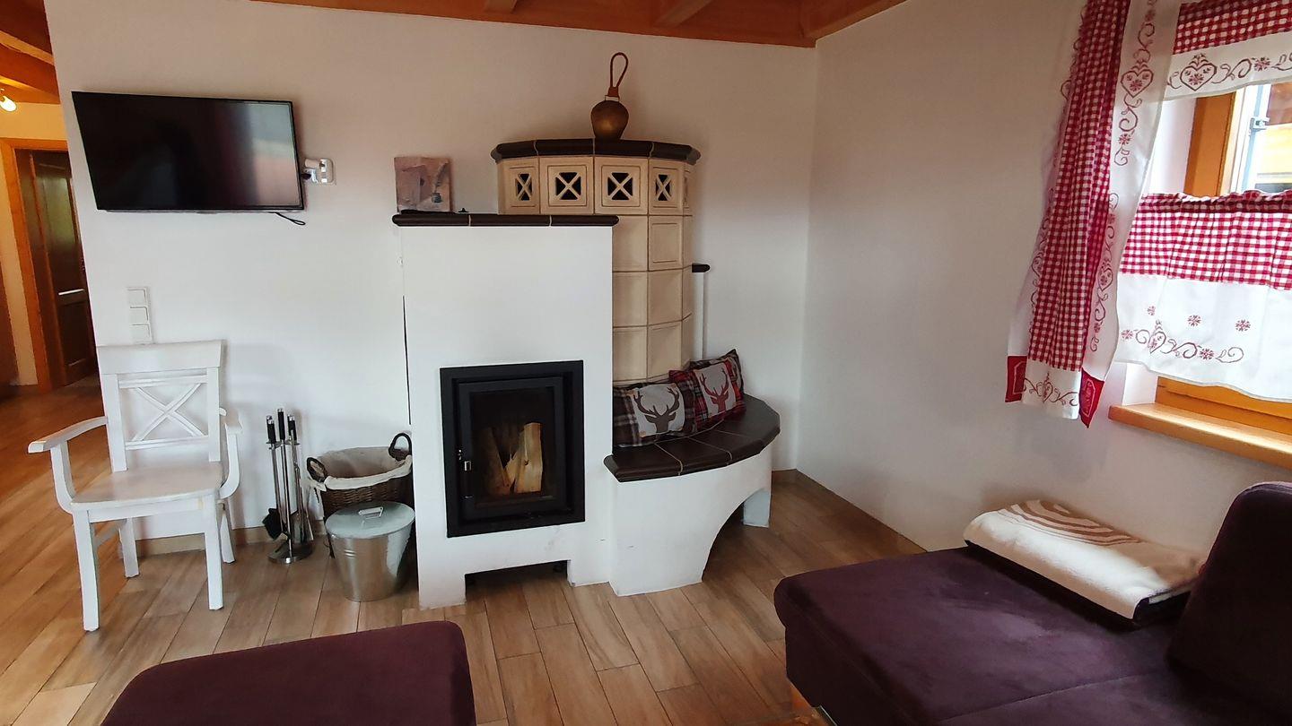 Das lichtdurchflutete Wohnzimmer lädt zum Verweilen ein. Hier können Sie nach einem erlebnisreichen Tag entspannen, sich am Kaminofen Wärme spenden lassen (Brennholz liegt bereit) oder beim Fernsehen den Tag Revue passieren lassen. Das geschmackvolle Mobiliar schafft einen harmonischen Ort, an dem sich jeder wohlfühlen kann.