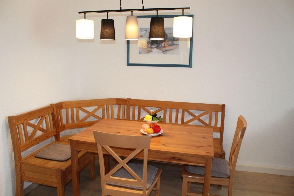Das moderne und freundlich eingerichtete Wohnzimmer lädt ein, sich wohl zu fühlen. Die schöne Sitzgruppe bietet Platz für alle Gäste.Flachbild-Fernseher und Radio gehören ebenfalls zur Ausstattung dieses Hauses. Vom Wohnzimmer aus gelangen Sie direkt auf Ihre Terrasse. Grillen mit Ihrem eigenen Grill ist gestattet. Der direkt angrenzende Essbereich bietet Platz für Ihre gemeinsamen Mahlzeiten und gemütliche Abende.
