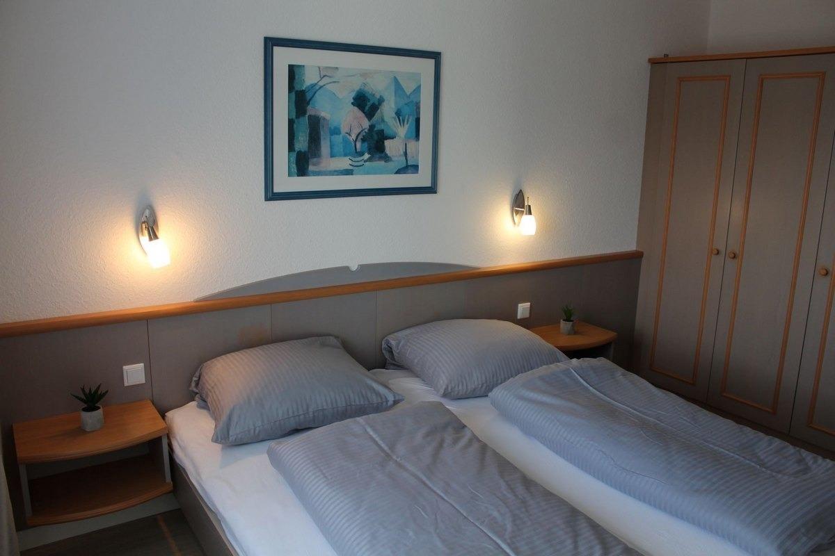 zwei Einzelbetten und Kleiderschrank