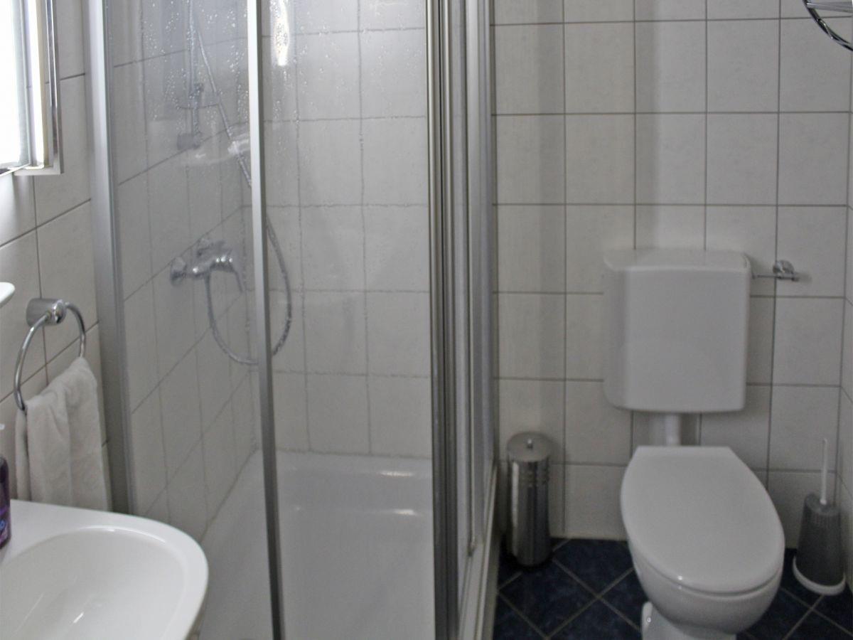 Voll ausgestattete Küche: Kühlschrank mit Gefrierfach, Herd (Ceranfeld), Dunstabzug, Backofen, Wasserkocher, Toaster, Kaffeemaschine, Besteck, Geschirr, Gläser, Töpfe und alle gebräuchlichen Küchenutensilien.