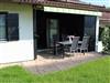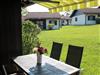 mit Gartentisch, 5 Stühlen und zwei Sonnenliegen. Ein Sonnenschirm kann an der Rezeption ausgeliehen werden.
