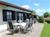 Die nach Süden ausgerichtete Terrasse ist möbliert mit einem Gartentisch und 6 Stühlen, sowie zwei Sonnenliegen. Außerdem hat das Ferienhaus eine Markise als Sonnenschutz.