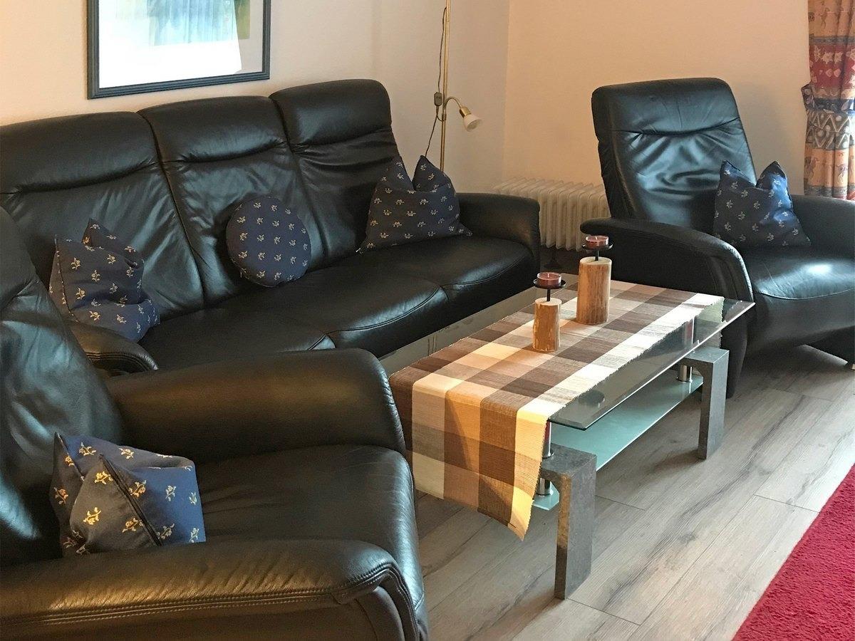 Das freundliche, helle Wohnzimmer lädt ein, sich wohl zu fühlen. Die große Sitzgruppe bietet Platz für alle Gäste.Ein sehr großer Flachbild-Fernseher mit Sky-Anschluß und Radio (Musikanlage) gehören ebenfalls zur Ausstattung dieses Hauses. Zusätzlich bieten wir Ihnen kostenloses/ hauseigenes Wlan 5G/LTE mit bis zu 300 Mbit/s pro Min. an.