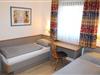 • Schlafzimmer/Kinderzimmer mit zwei Einzelbetten, Tisch mit Stuhl, Kleiderschrank