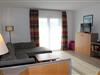 • Wohnzimmer mit angrenzendem Essbereich / Schlafsofa für die 5. Person / Zugang zur Terrasse