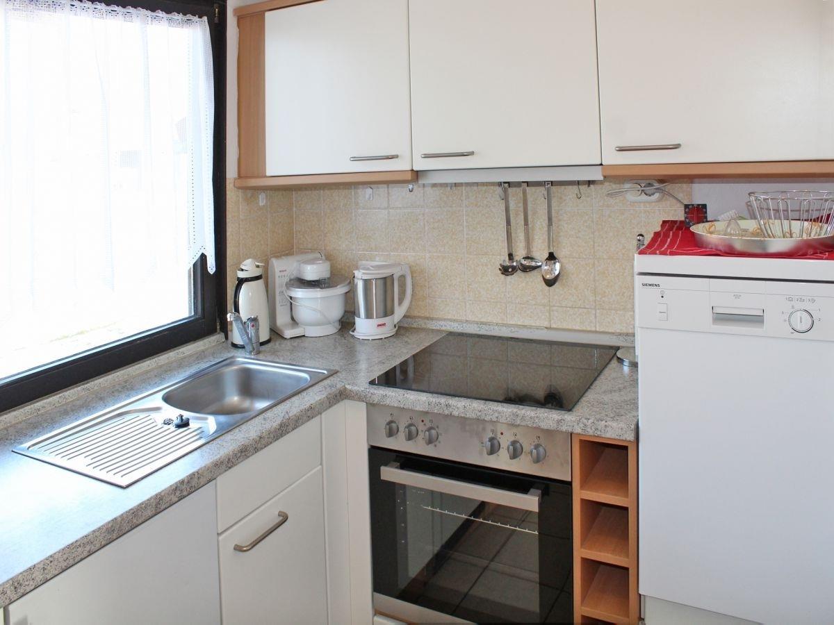 Eine komplett ausgestattete, abgeschlossene Küche, Spülmaschine, Elektroherd, Backofen und Kühlschrank gehören wie auch eine Mikrowelle, Kaffeemaschine, Wasserkocher und ein Toaster zum Standard dieses Hauses