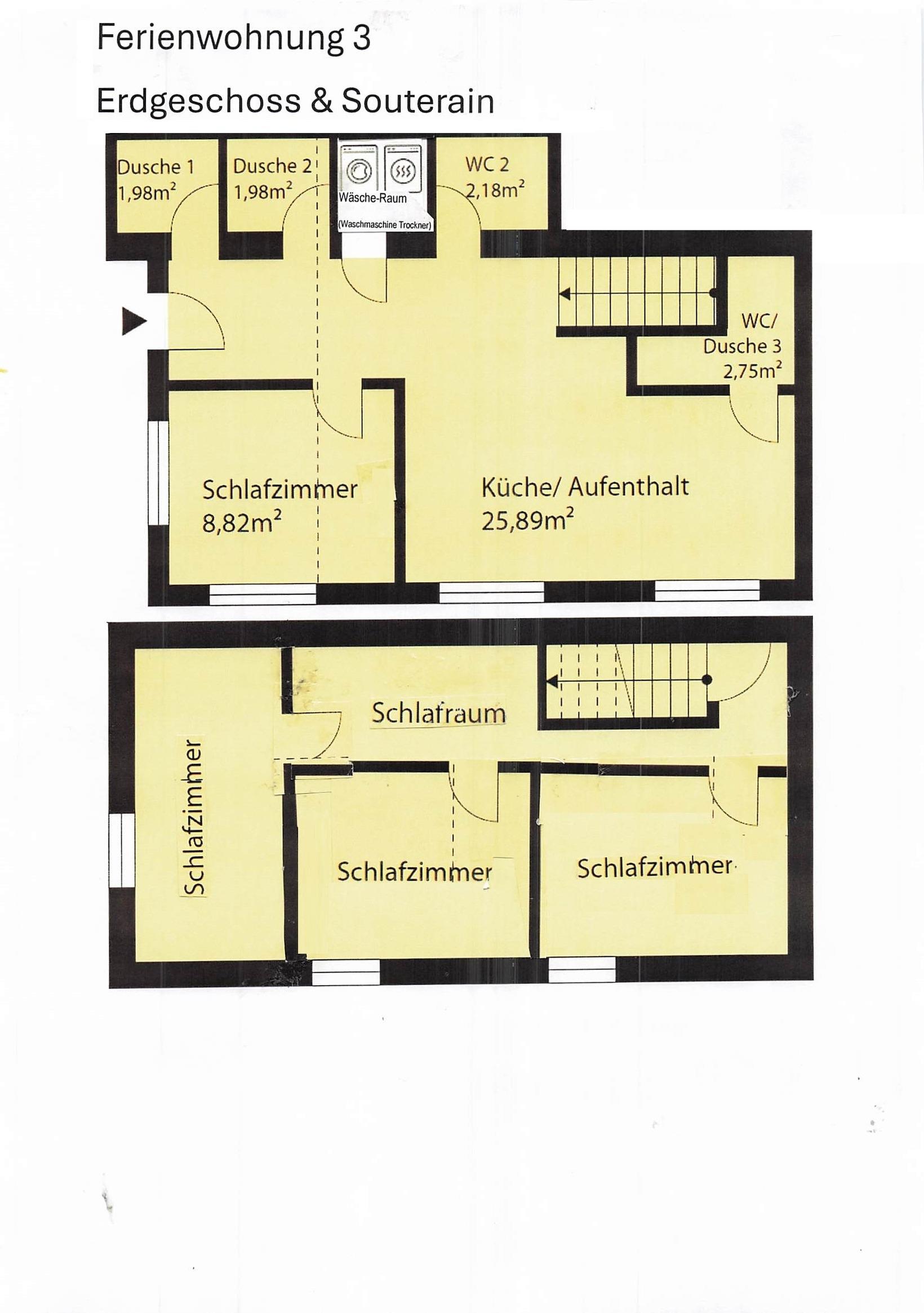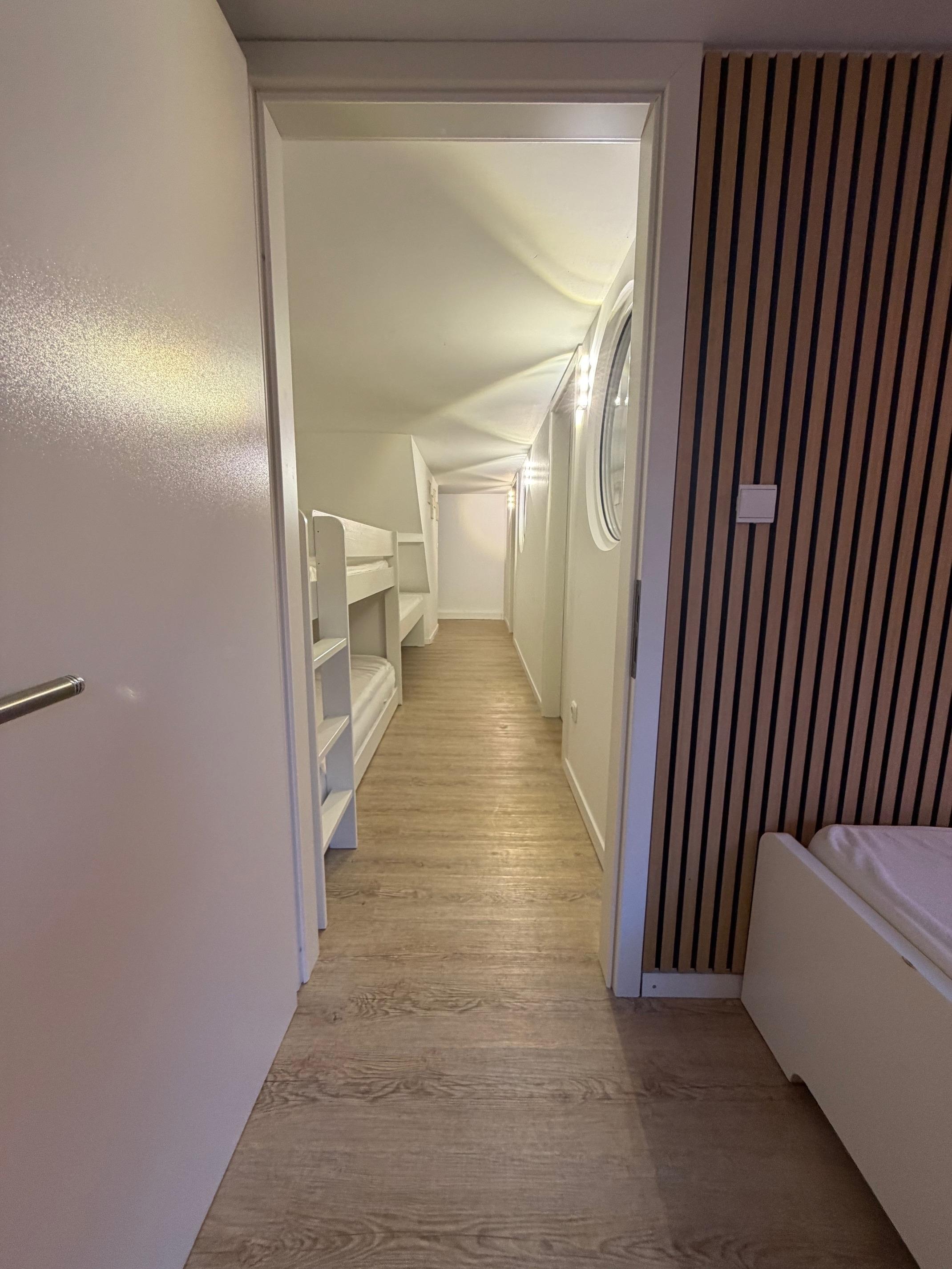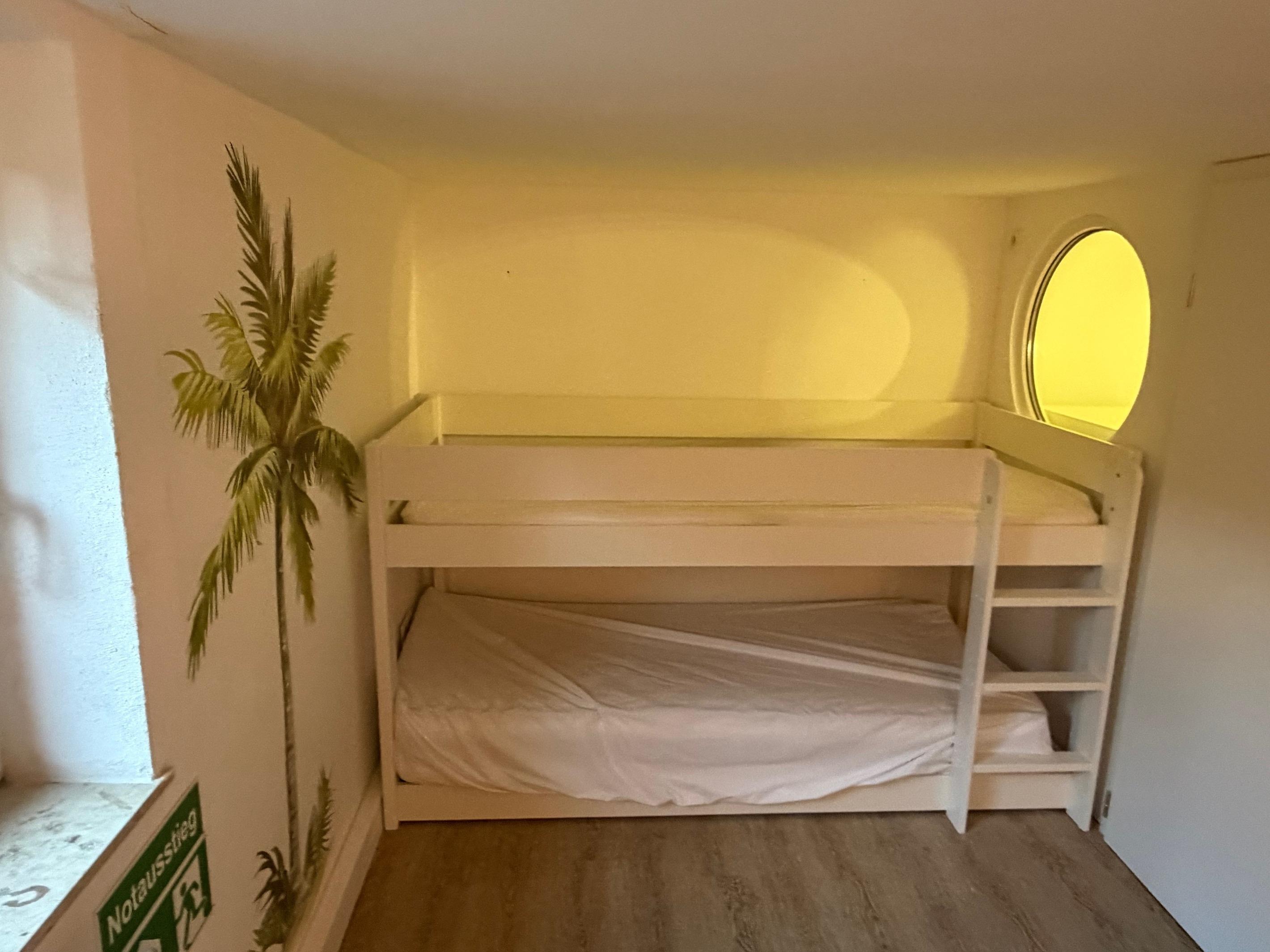 Im Schlafsaal im Souterrain finden sich 7 Etagenbetten , 1 Doppelbett und 1 Einzelbett