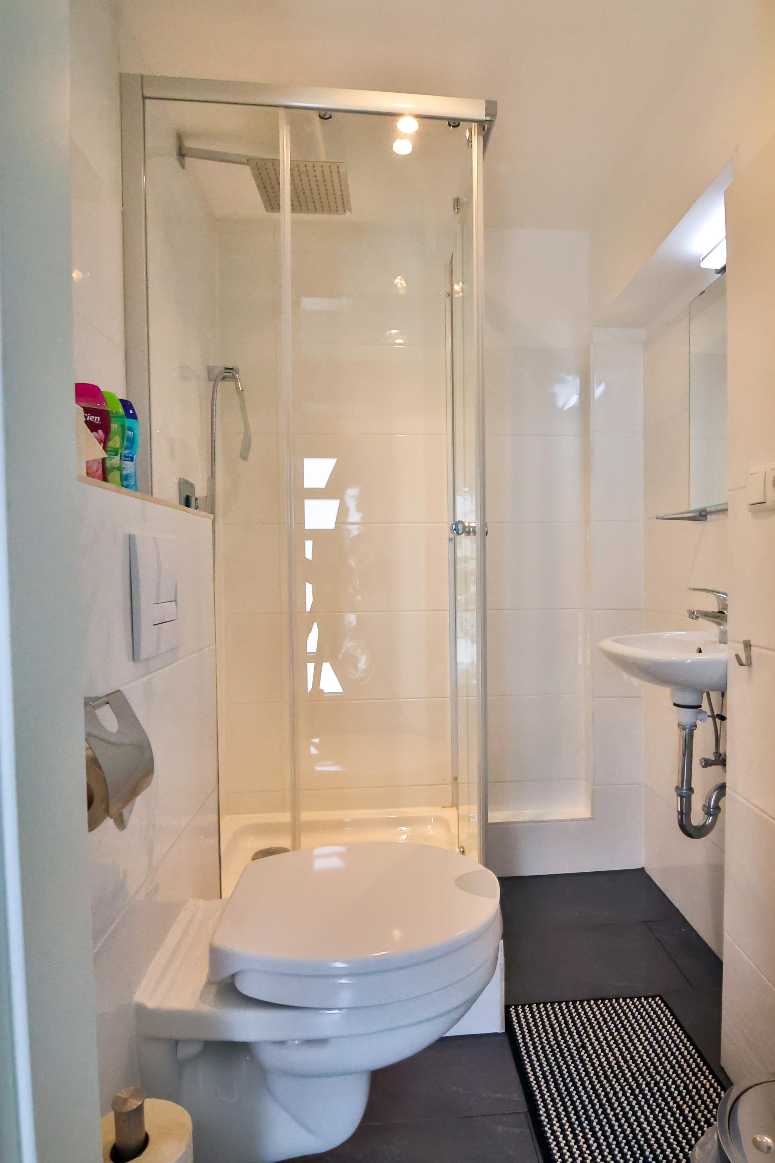 Es gibt 2 Duschbäder , eins mit WC und nochmal ein weiteres separates Gäste-WC