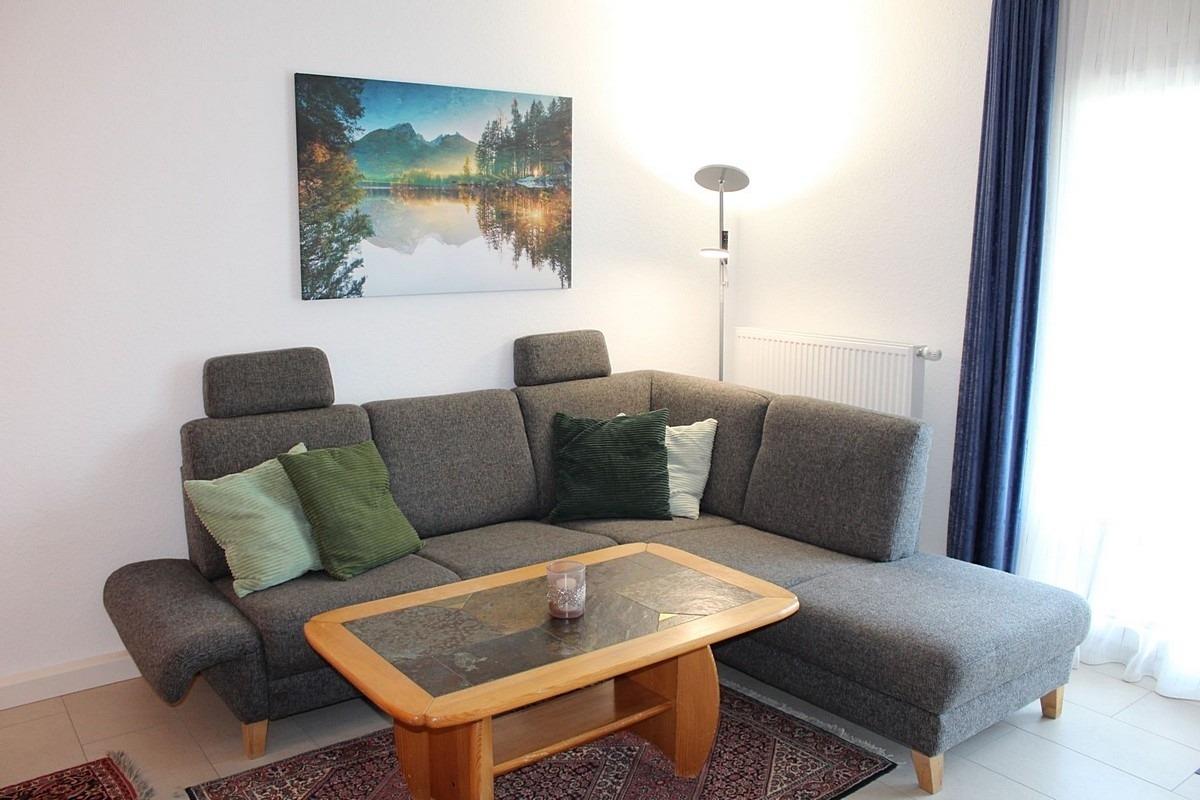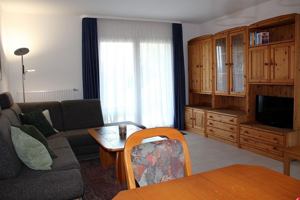 Wohn- Esszimmer: Polstersitzgruppe mit Schlafcouch, Essgruppe, TV, Radio, Telefon, WLAN-Internetanschluss