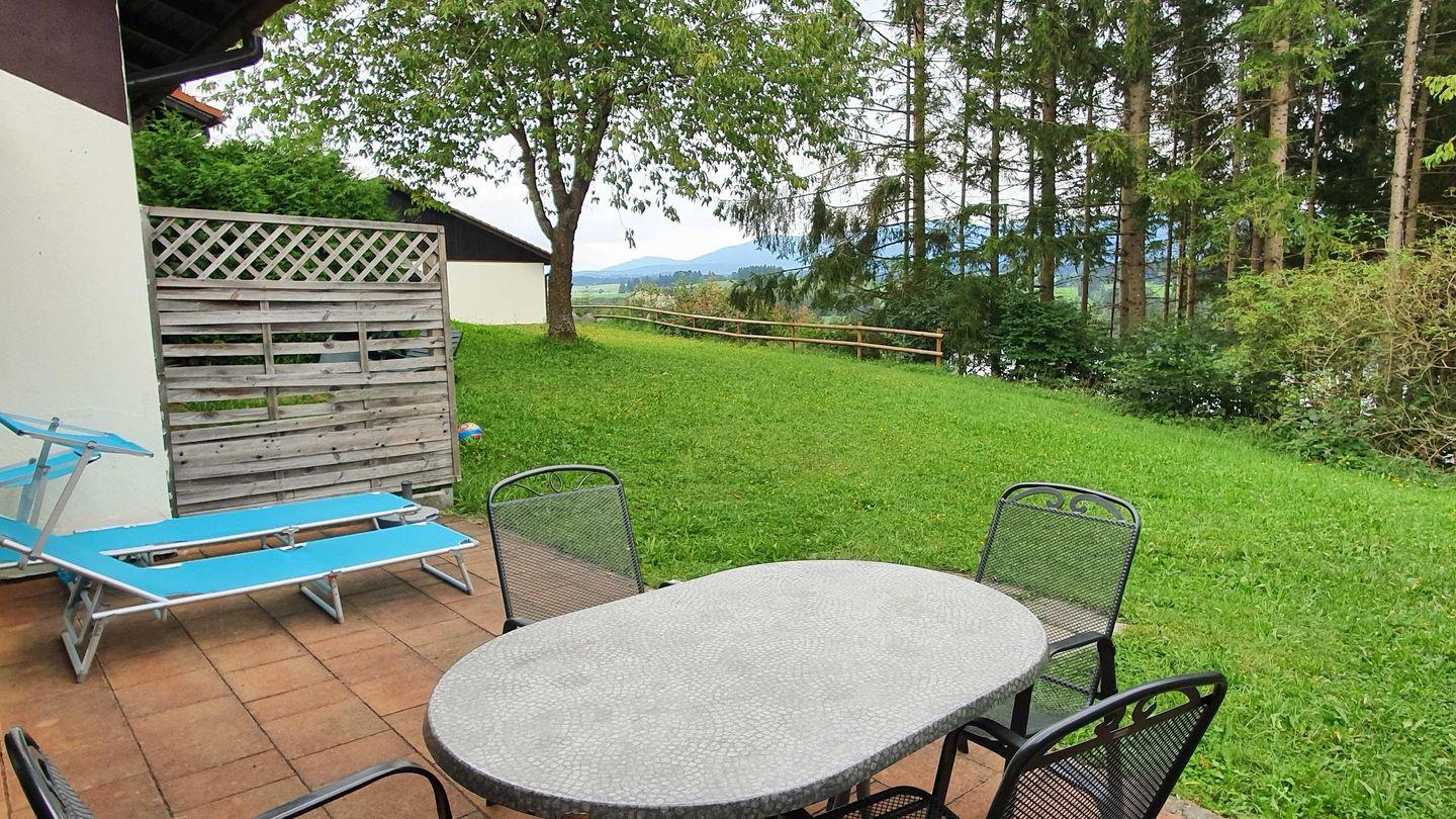 Die große Terrasse ist ein weiteres Highlight dieser Unterkunft. Hier können Sie bei schönem Wetter die Sonne genießen, während die Kids im angrenzenden Garten spielen. Der Garten ist mit bequemen Gartenmöbeln ausgestattet, ideal für entspannte Stunden im Freien. Für die jüngsten Gäste gibt es einen Spielplatz direkt auf dem Gelände, was diese Ferienwohnung besonders kinderfreundlich macht.