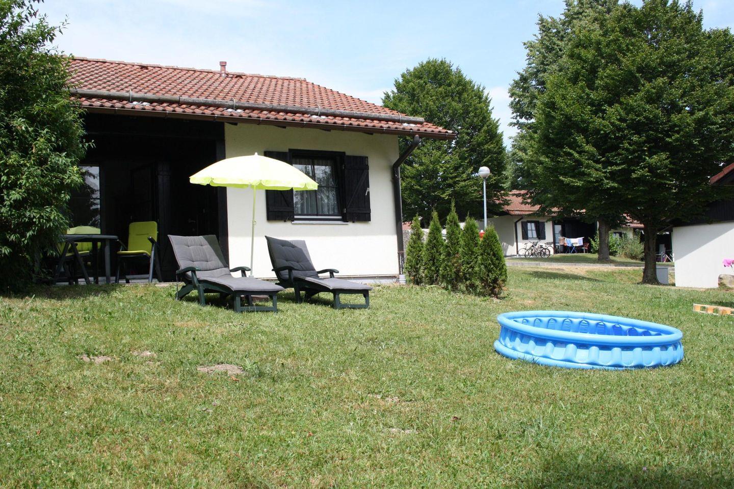 Von der überdachten Terrasse aus haben Sie einen herrlichen Blick auf die umgebende Natur. Hinweis:die Sträucher am Abhang zum See können die Sicht beeinträchtigen, das Grundstück gehört nicht zum Feriendorf. Hier können Sie die frische Luft genießen, während die Kinder auf dem Spielplatz der Anlage toben oder die große Liegewiese erkunden. Die kinderfreundliche Ausstattungen wie Kinderhochstuhl und Babybett machen Ihren Aufenthalt besonders angenehm.