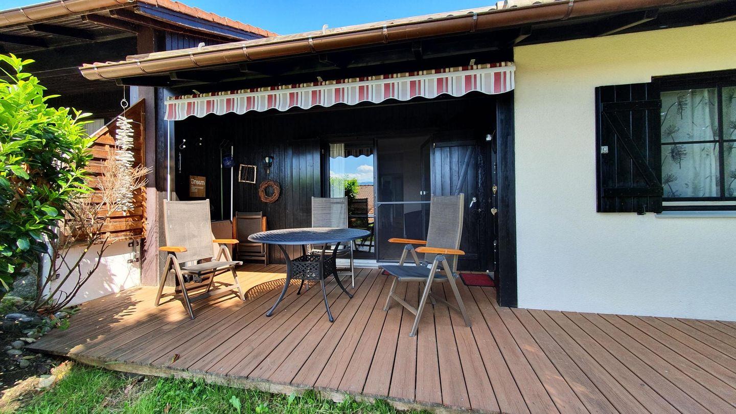 Willkommen im Feriendorf Hochbergle Haus 131 in Lechbruck am See! Diese gemütliche Ferienwohnung bietet Ihnen auf 64 m² Platz für bis zu 4 Personen und ist ideal für Familien oder Paare. Die Unterkunft verfügt über zwei komfortable Schlafzimmer, ein helles Wohnzimmer mit Essbereich und eine gut ausgestattete Küche. Genießen Sie entspannte Stunden auf der Terrasse oder im Garten und nutzen Sie die vielfältigen Freizeitmöglichkeiten in der Umgebung, wie Wandern, Wassersport oder Skifahren. Haustiere sind bei uns erlaubt! Buchen Sie jetzt Ihren unvergesslichen Aufenthalt!