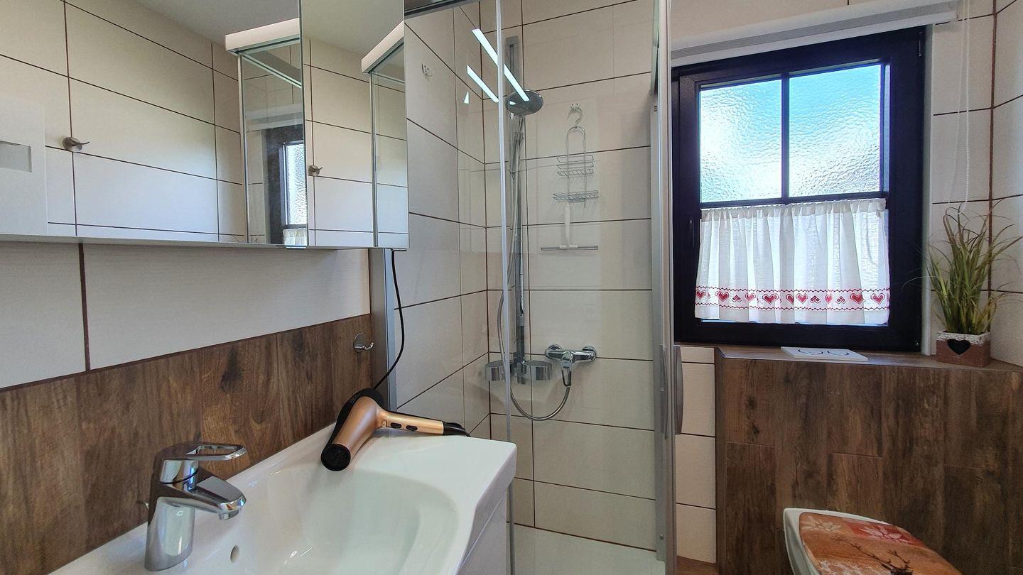 Bei schlechtem Wetter können Sie sich im geräumigen Badezimmer mit bodengleicher Dusche erfrischen oder sich an den Flammen des Kaminofens wärmen. Sie finden außerdem ein separates Gäste-WC für zusätzlichen Komfort. Die Ferienwohnung ist allergikergeeignet und zeichnet sich durch Nichtraucherfreundlichkeit aus – hier können Sie unbesorgt durchatmen und sich wohlfühlen.