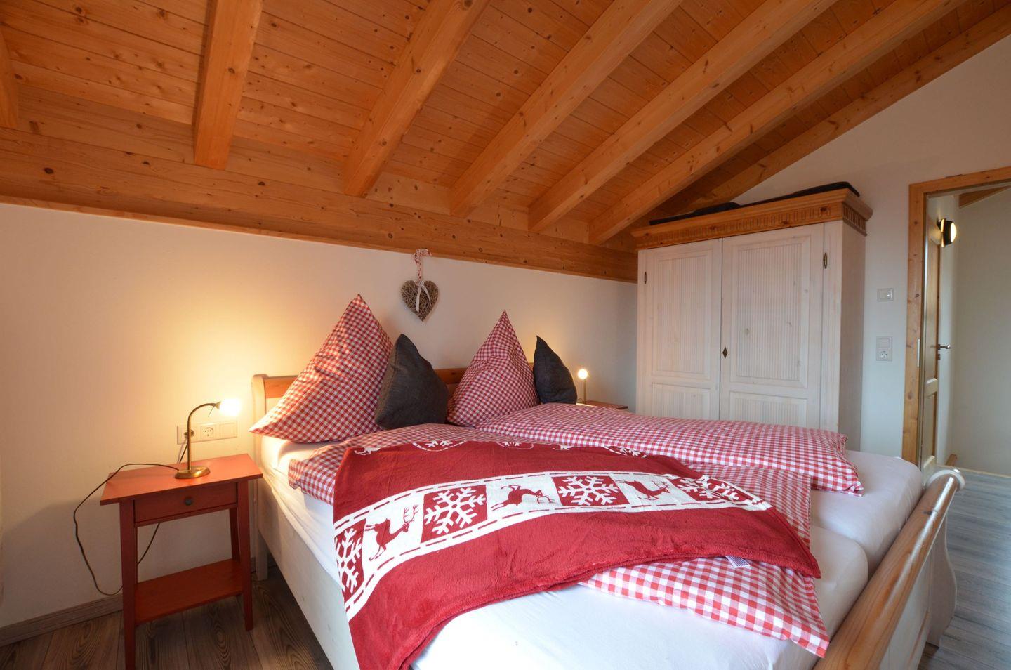 Das Obergeschoss hält 2 helle, freundlich eingerichtete Doppelschlafzimmer, 1 Zimmer mit Etagenbett sowie das Bad für Sie bereit.