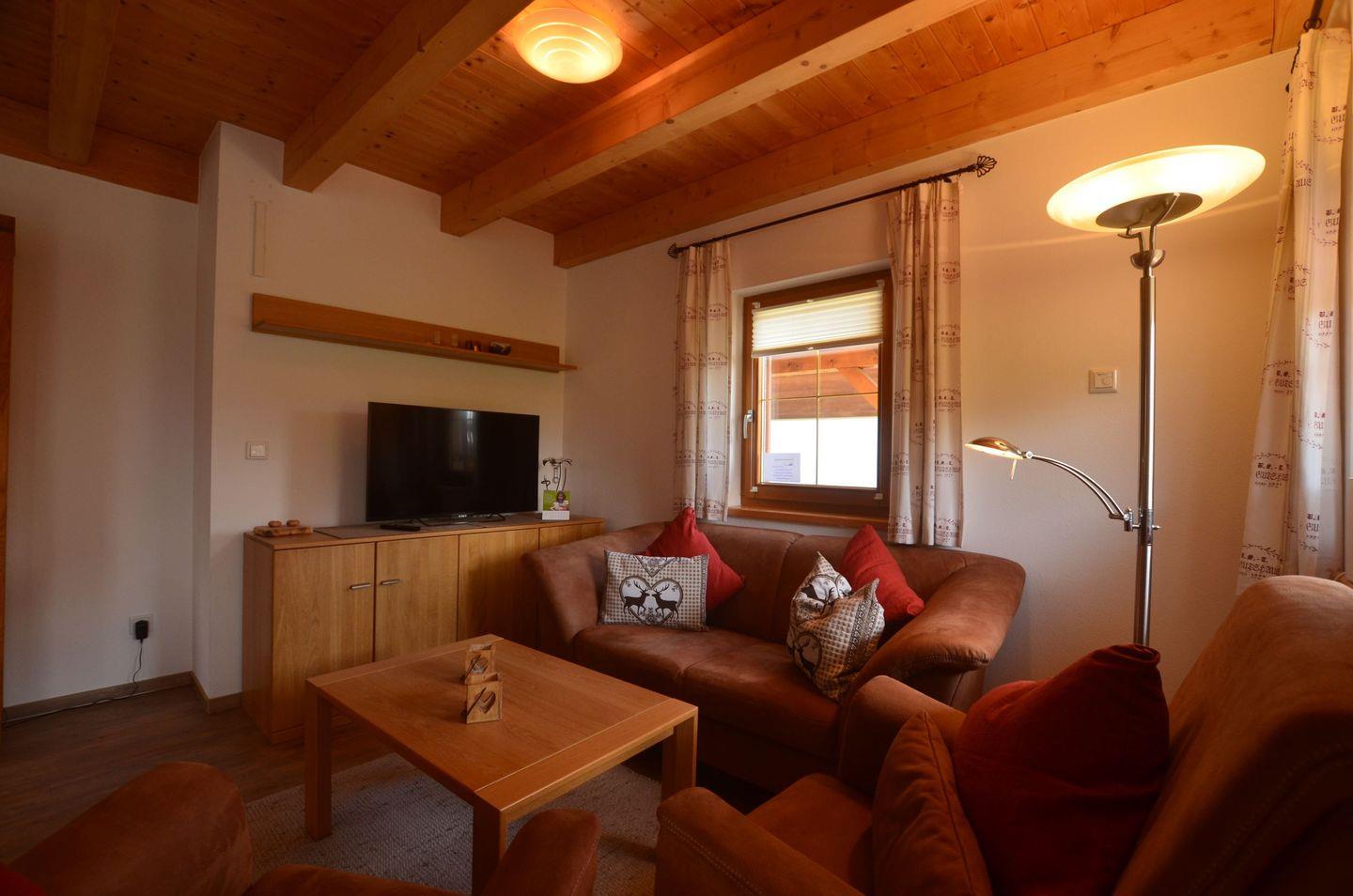 Der einladende offene Wohnbereich ist das Herzstück des Hauses. Hier können Sie nach einem aufregenden Tag in der Natur auf dem bequemen Sofa entspannen und die wohlige Wärme des traditionellen Schwedenofens genießen.