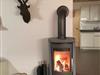 Im EG befindet sich ein helles Wohnzimmer mit Kaminofen, ein großer Esstisch, eine Fußbodenheizung, eine offene Küche mit Geschirrspüler, Kaffeemaschine, Toaster, Wasserkocher und Mikrowelle,