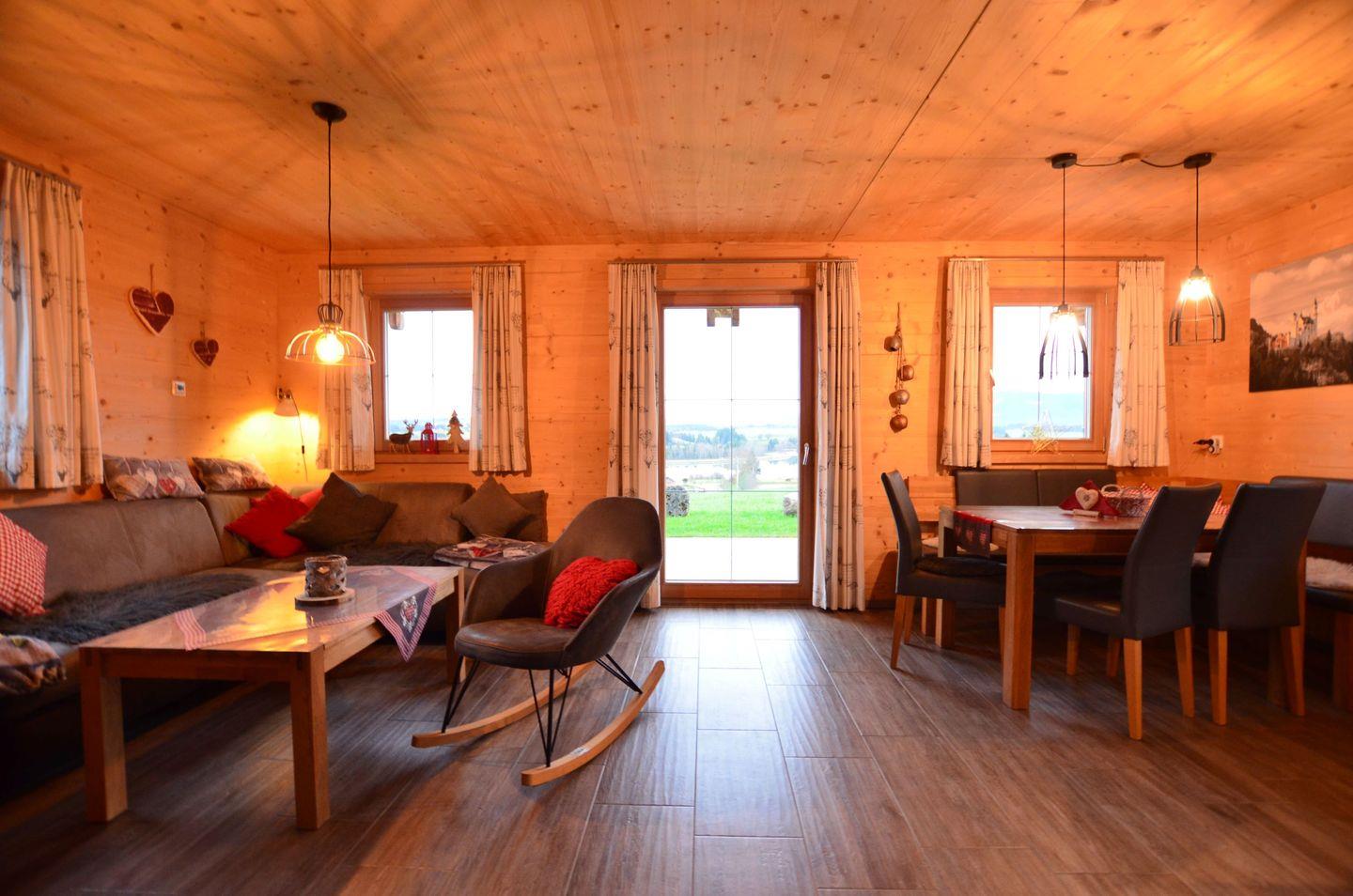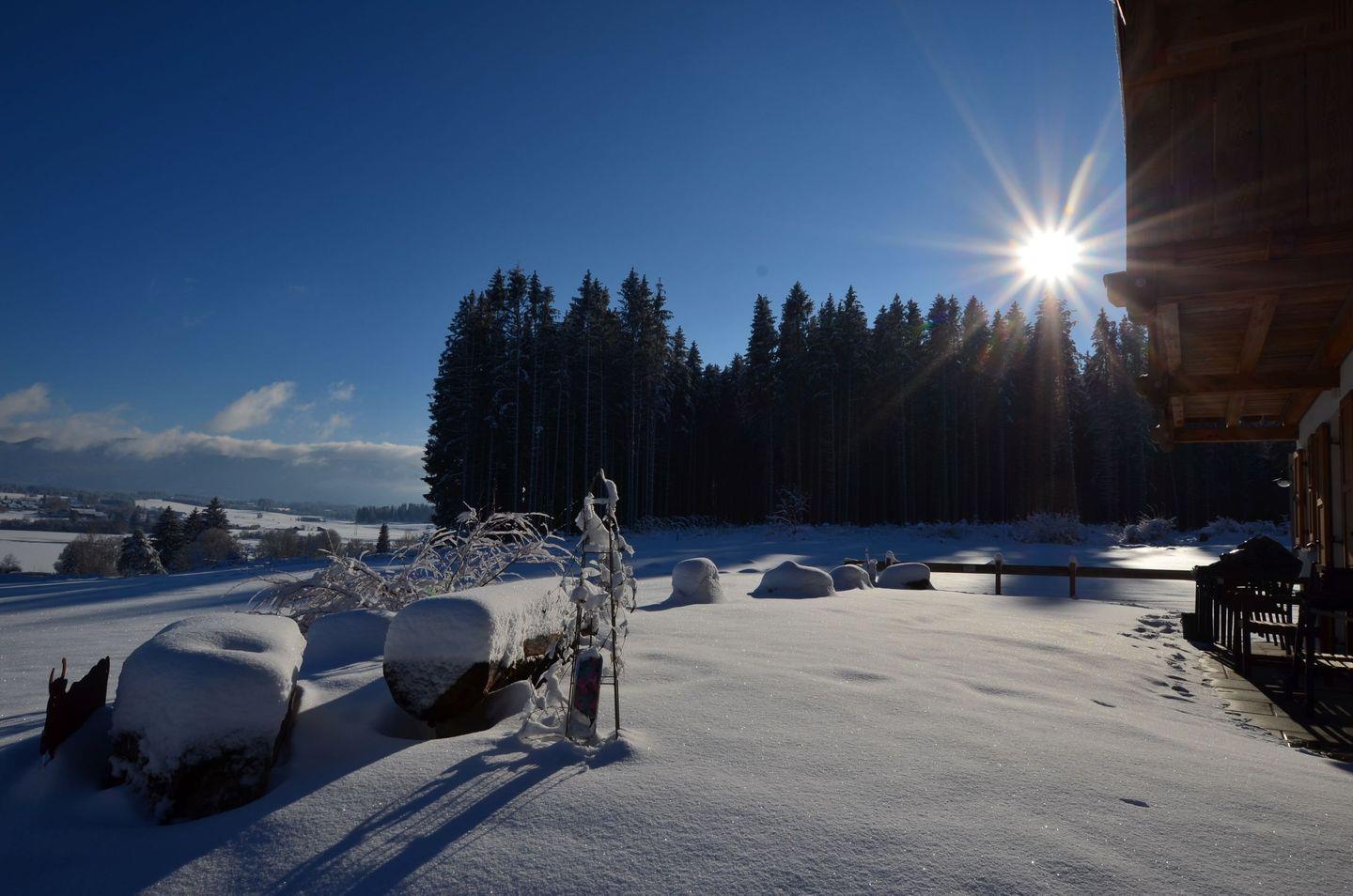 Urlaub im Einklang mit der Natur - im Ferienchalet Allgäuglück in Waldrandlage mit traumhaften Blick auf den Lechsee und die Berge erleben.