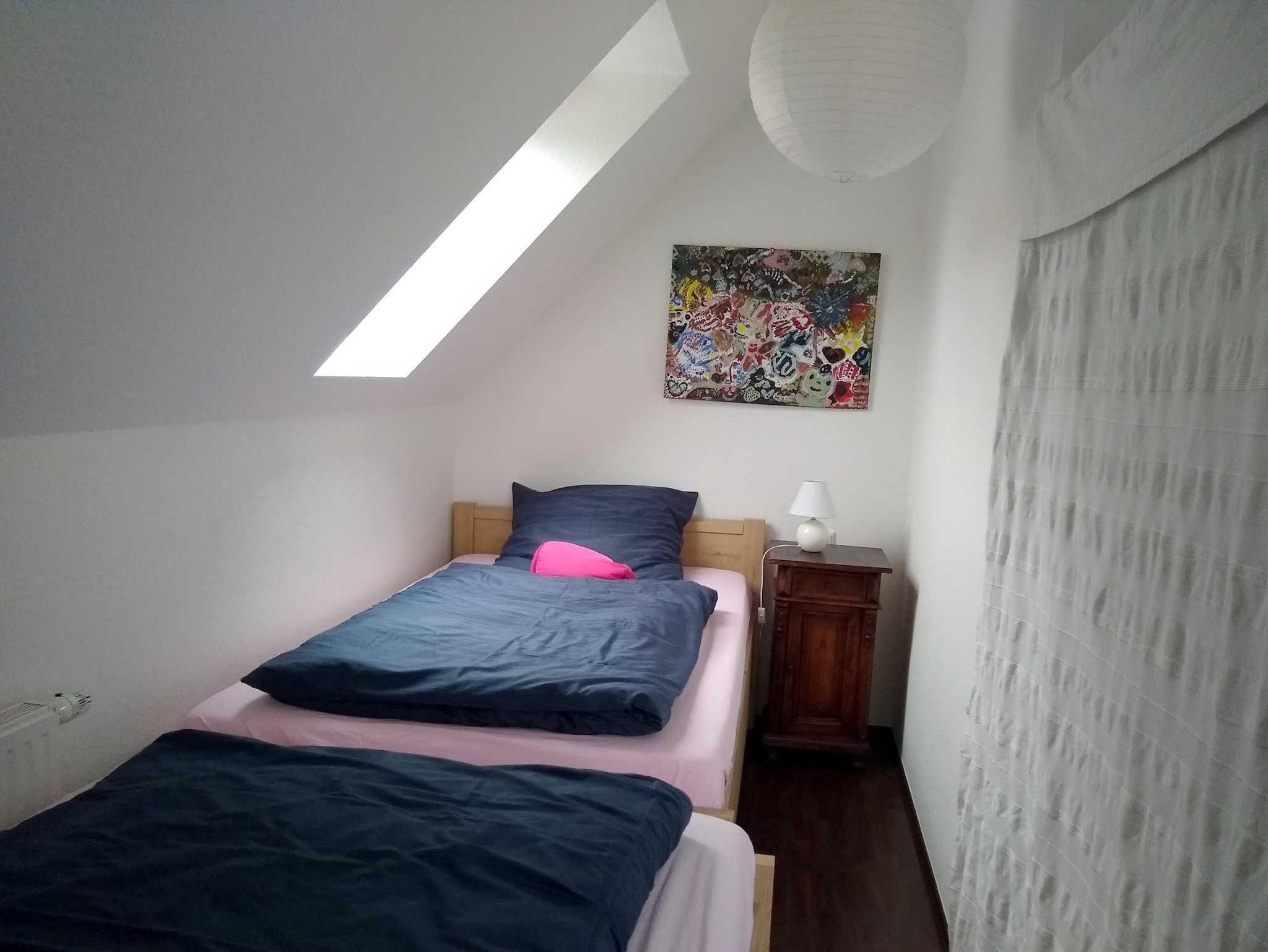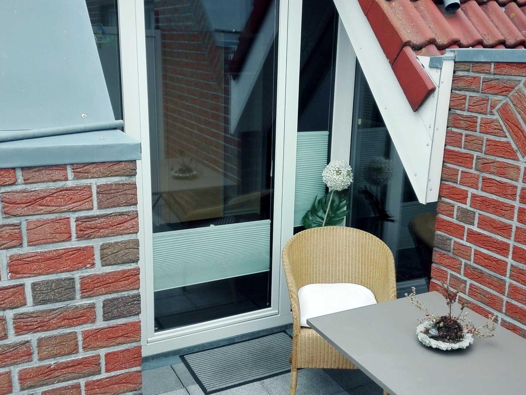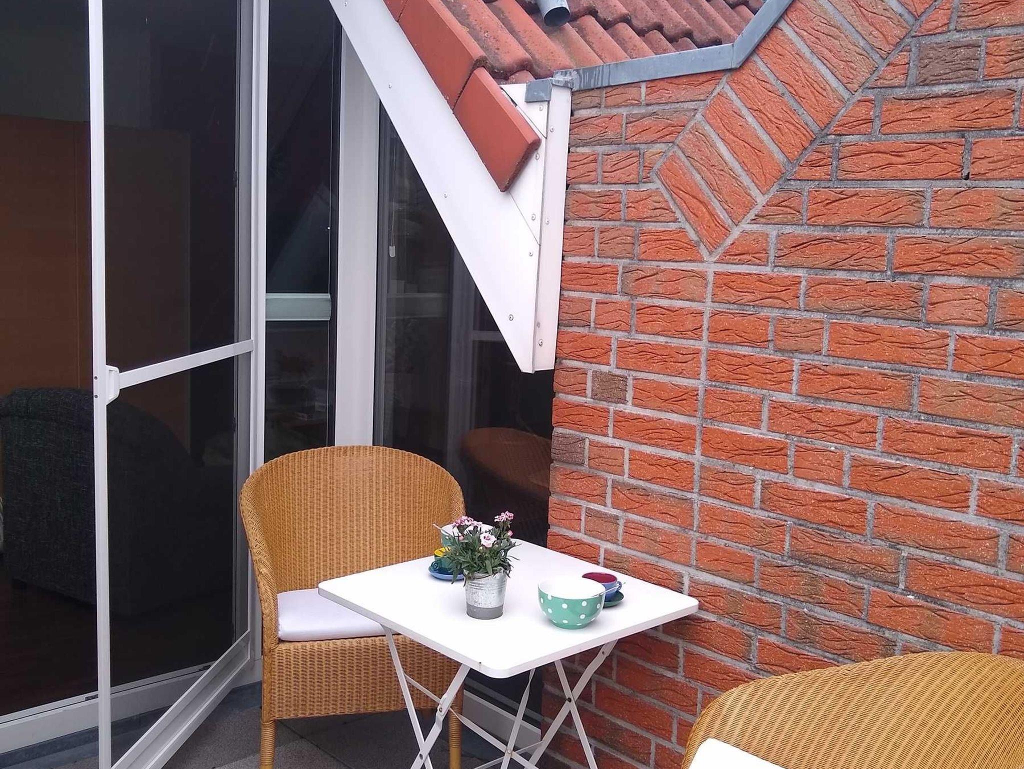 Das 50 Quadratmeter große Appartement ist über eine Treppe im ersten Stock zu erreichen. Die Ferienwohnung ist seniorenfreundlich eingerichtet. Zum Haus gehören ein abschließbarer Fahrradschuppen und ein PKW-Stellplatz. Die Küche ist umfänglich ausgestattet mit Geschirrspülmaschine, Mikrowelle und Kaffeemaschine. Im Duschbad stehen zusätzlich eine Waschmaschine und ein Trockner. Im nicht einsehbaren Schlafbereich befinden sich zwei 1.20 m breite, hintereinanderstehende Betten mit hohem Einstieg. Ein großer Tisch, vier gemütliche Loomstühle, die auch auf dem Balkon benutzt werden können, bilden den Essbereich. Ein bequemes Sofa, leicht zur Schlafliege umbaubar, mit einem dazugehörenden Sessel und ein großer Fernseher runden die Wohnung ab. Zur weiteren Ausstattung gehören eine Klimaanlage, ein Insektenschutz zum Balkon hin und eine zusätzliche Fußbodenerwärmung in Küche und Bad. Der Internetzugang über Wlan ist kostenfrei.