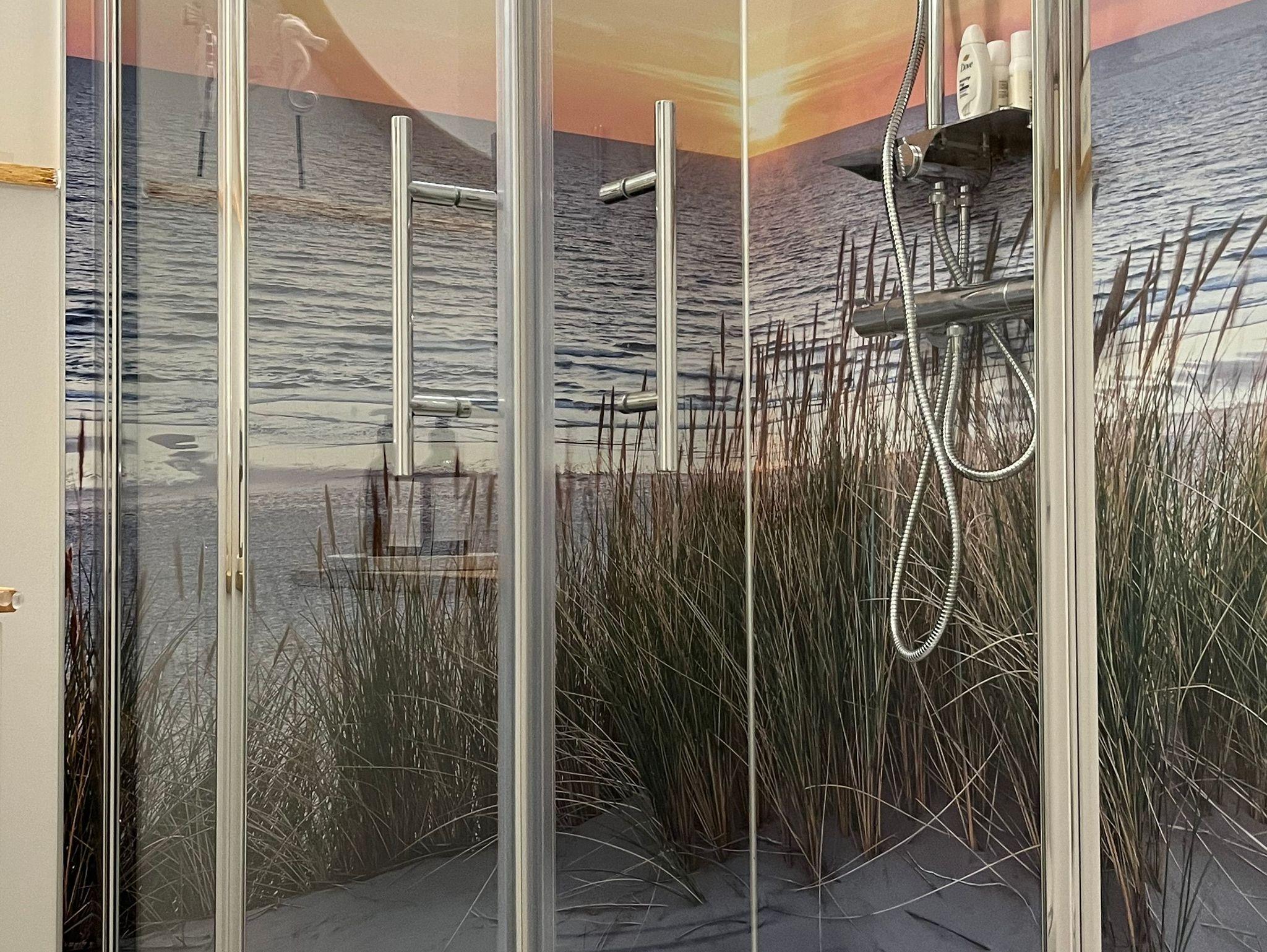 Zum Schlafzimmer auf der zweiten Etage gehört ein Ankleideraum mit ausreichend Platz, Ihre Kleidung und Gepäck unterzubringen sowie ein Tresor, Bügeleisen und Bügelbrett. Das Badezimmer mit WC, Dusche und Waschbecken bietet Ihnen außerdem die Möglichkeit, Waschmaschine und Trockner während Ihres Aufenthaltes kostenfrei zu nutzen.