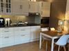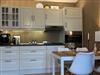 Auf der ersten Etage befindet sich das Wohnzimmer mit Sofa und LED TV, eine Einbauküche mit Geschirrspülmaschine, Backofen, Mikrowelle und Kaffeevollautomat und ein überdachter Balkon.