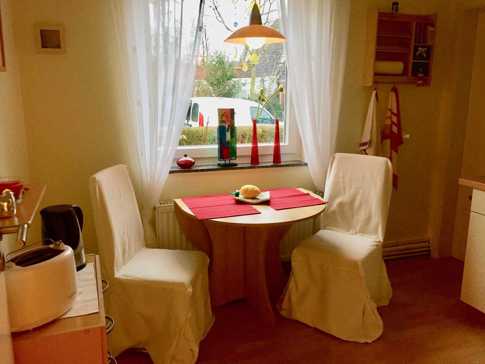 Komplette Ausstattung inkl. Geschirr, Kochgeschirr, Mikrowelle, Kaffeemaschine (Filter oder Senseo), Wasserkocher, kleinem Backofen, Radio, SAT-TV, Bettwäsche, Handtücher und Waschmaschine. Parkplätze sind an der Straße vorhanden.