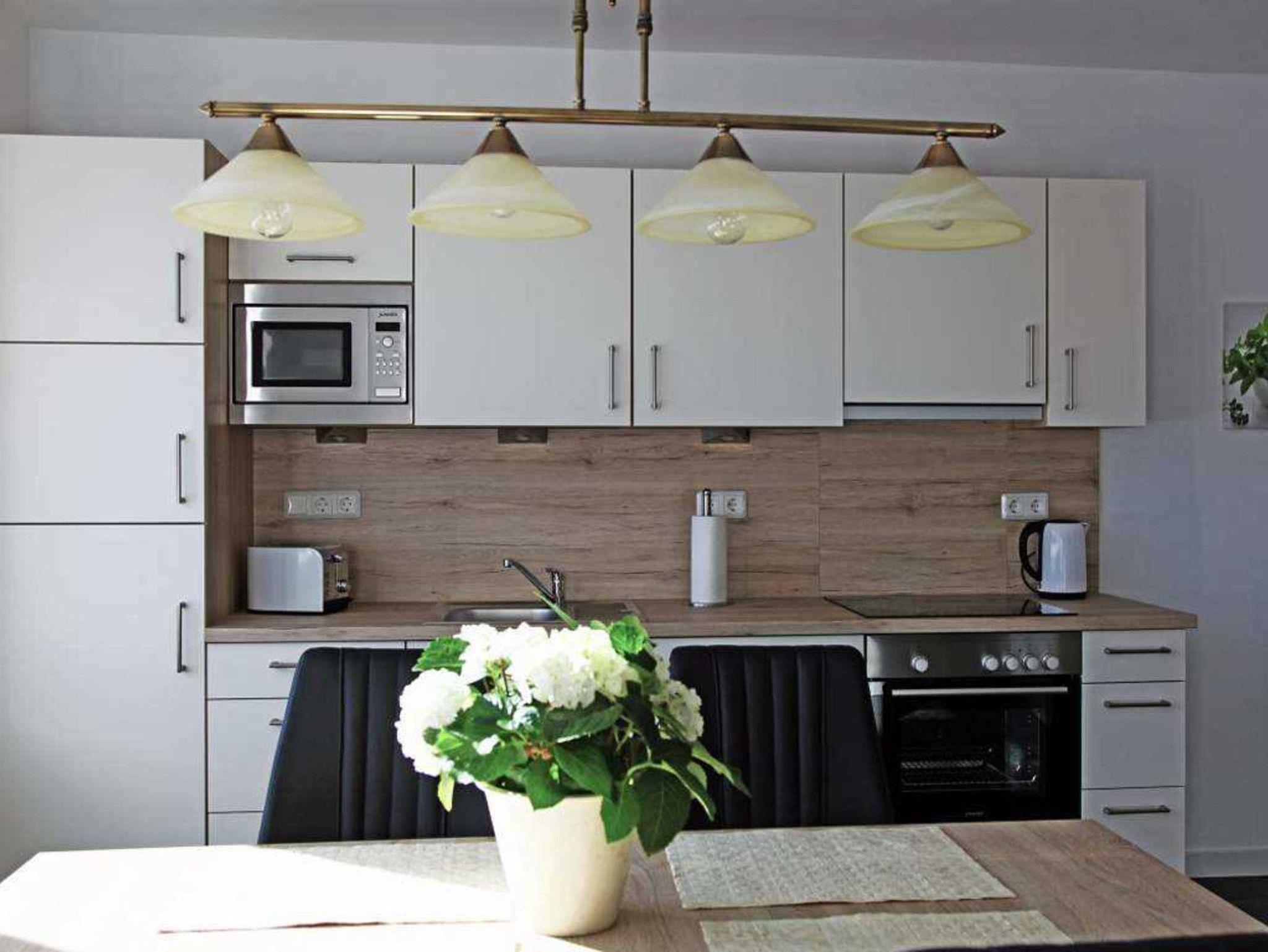 Im großen Wohnraum ist die voll ausgestatte Küche mit einem Esstisch und Sitzgelegenheiten. Im optisch getrennten Wohnzimmerbereich lädt eine gemütliche Couch (Schlafcouch) zum Entspannen ein.