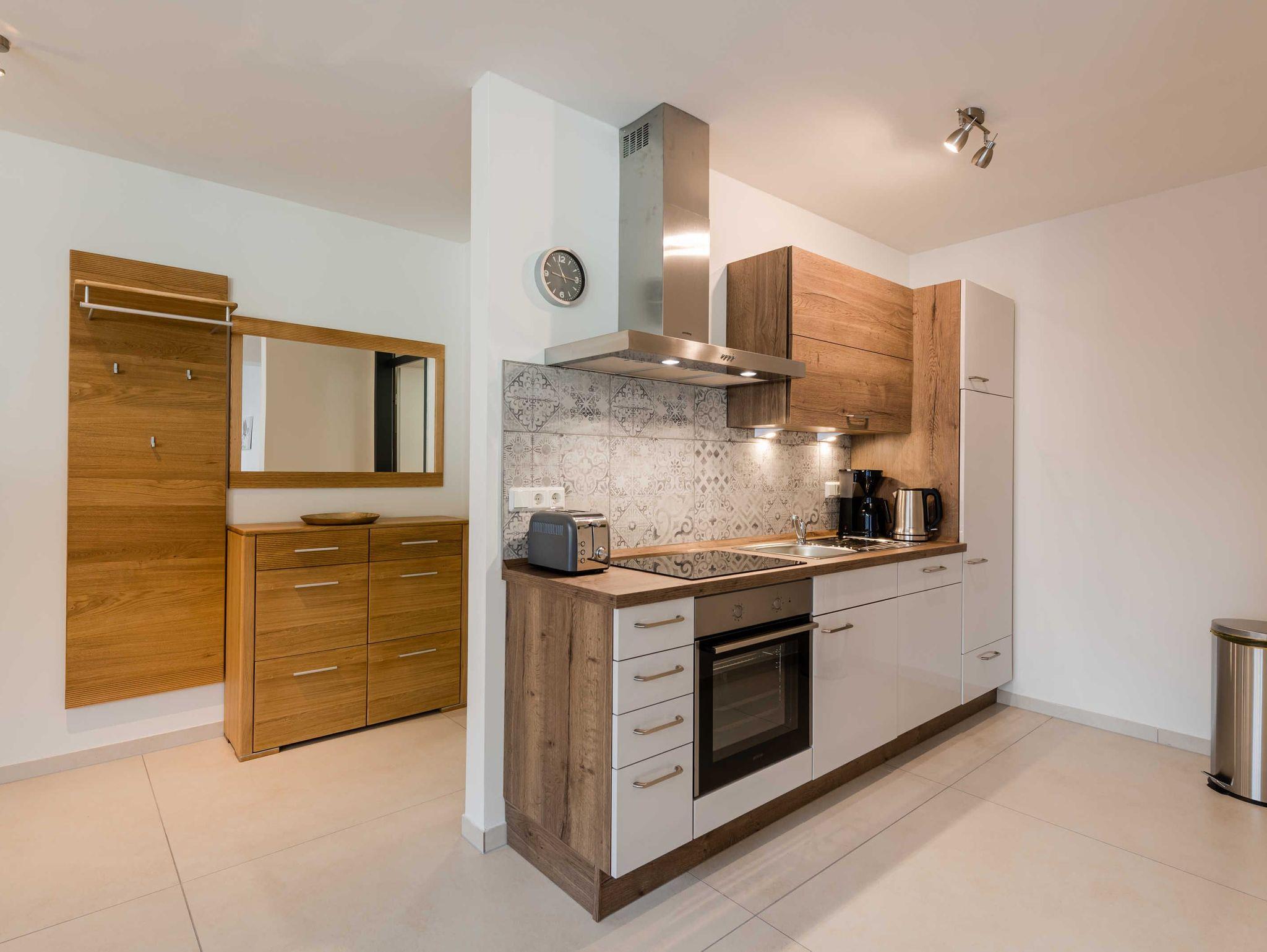 „1 Möhlenwarf“ verfügt über ein Schlafzimmer, ein Bad mit Dusche und über einen großen Wohn-Küchenraum.