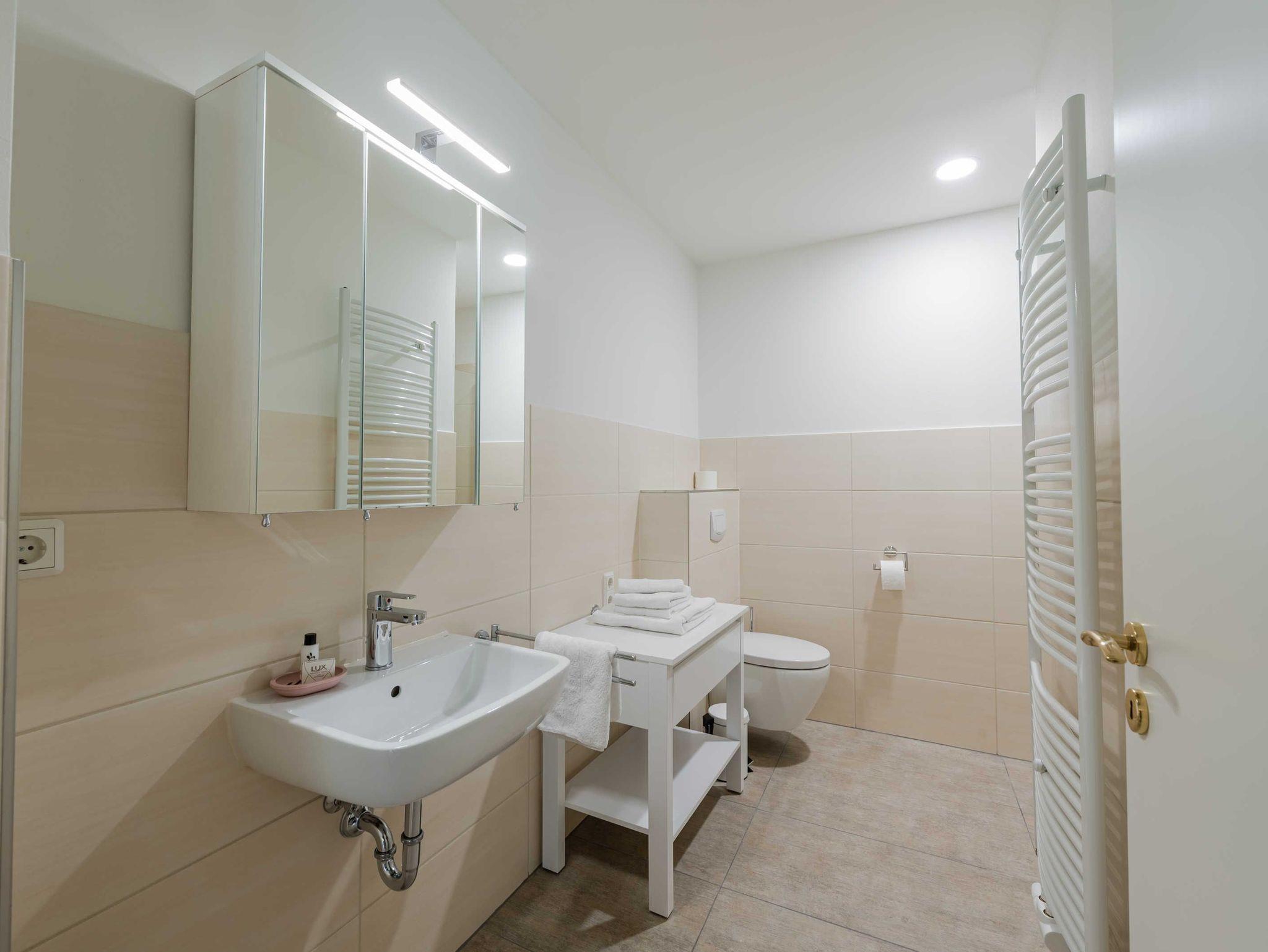Wohnungen eingebaut. Die Fußböden sind gefliest. Im Bereich der Couch in