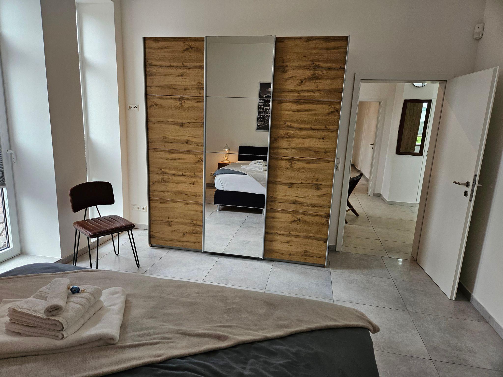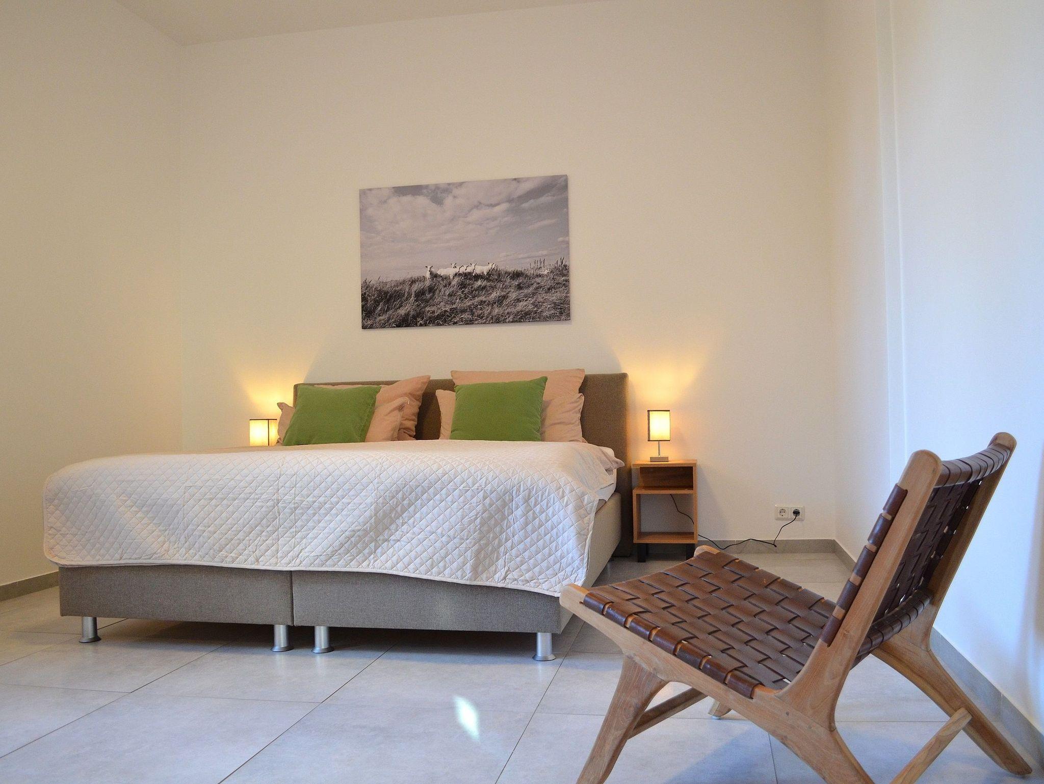 Diese Ferienwohnung verfügt über 2 Schlafzimmer jeweils mit Boxspringbetten der Größe 180x200 cm, einen großen Wohn/Küchenraum und ein Bad.